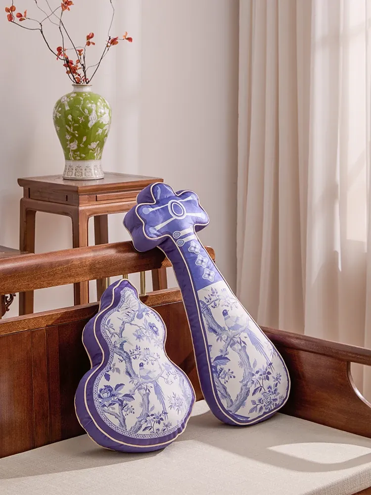 新中式デザインの異形琵琶抱き枕 - 国風の雰囲気を演出する、美しいリビングソファ用クッション。スタイリッシュなサンプルルームや書斎にもぴったりな腰用クッション!