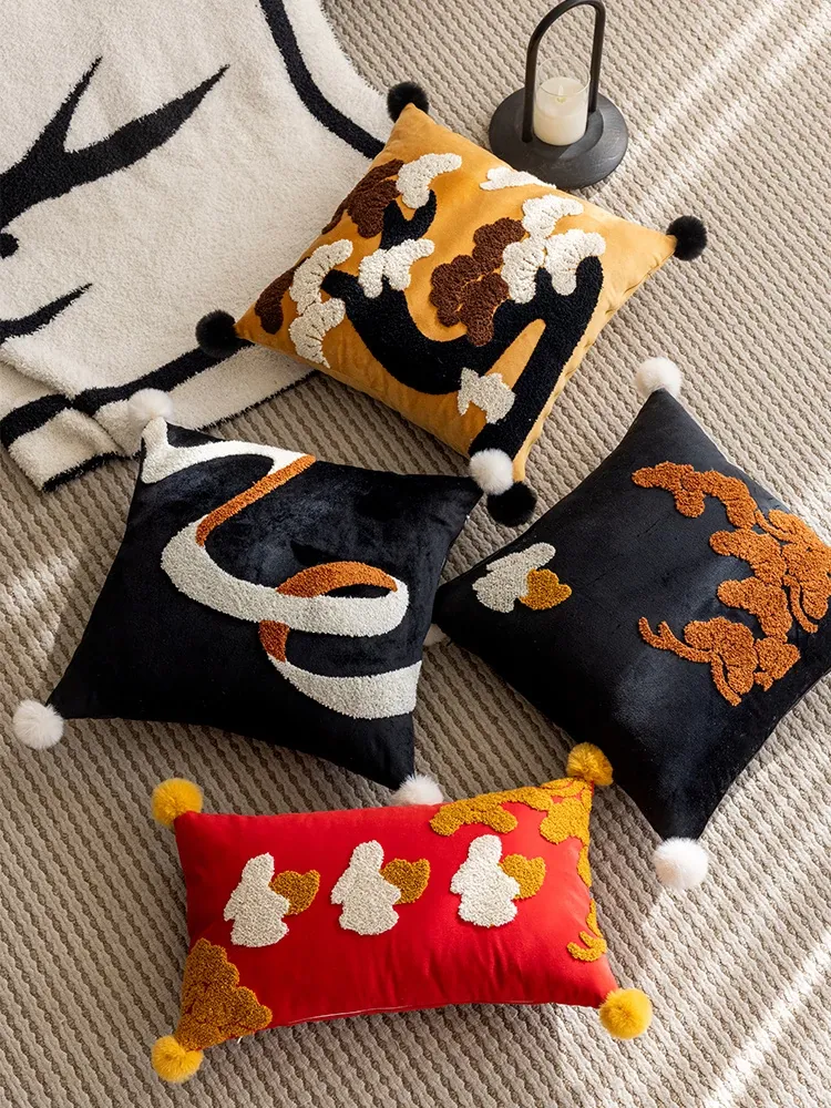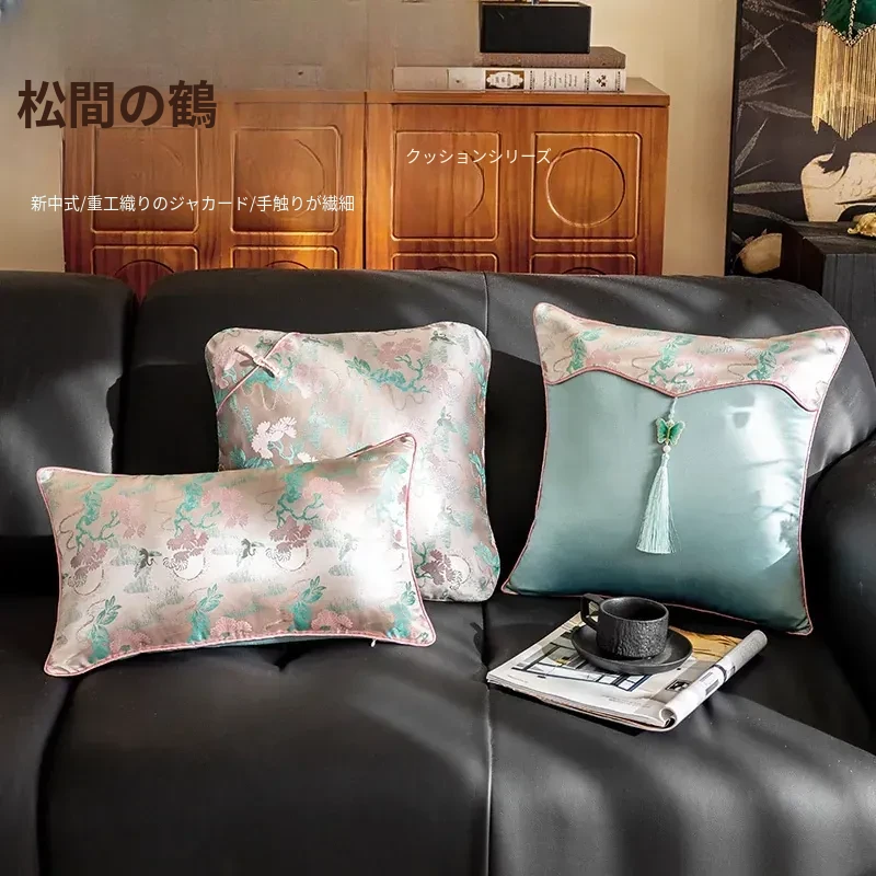 中古風の軽奢華な高級感漂うリビングソファ用背当てクッションカバー、刺繍デザインでおしゃれに!新中式スタイル、取り外し可能で洗えるクッションで、快適さと美しさを両立!