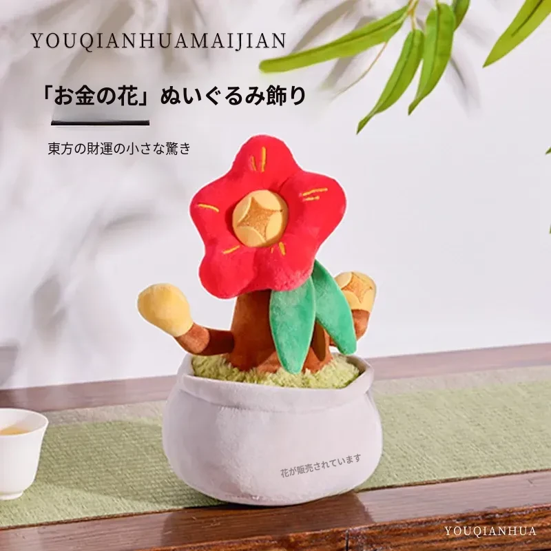 新中式の金運を呼ぶパキラのぬいぐるみ - 高升竹の飾り付きリアルな盆栽風デコレーション、書斎や茶室にぴったりなクリエイティブなインテリアアイテム!