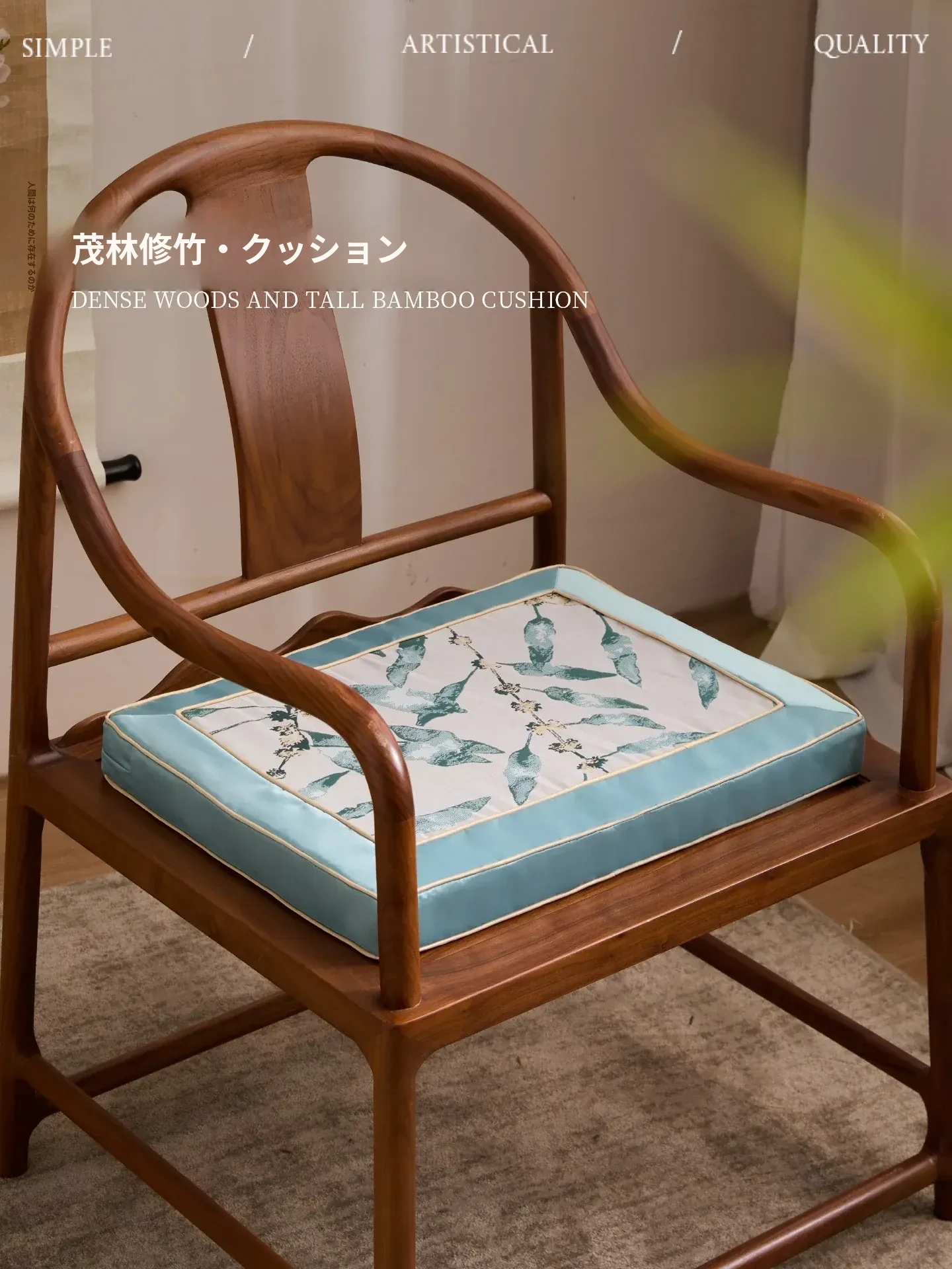 新中式スタイルの茂林修竹デザインクッション - 高級紅木椅子用座布団!太師椅やサークルチェアにも最適な実木家具用ティー椅子クッション。心地よさと美しさを兼ね備えた一品で、あなたのリビング空間を格上げします!