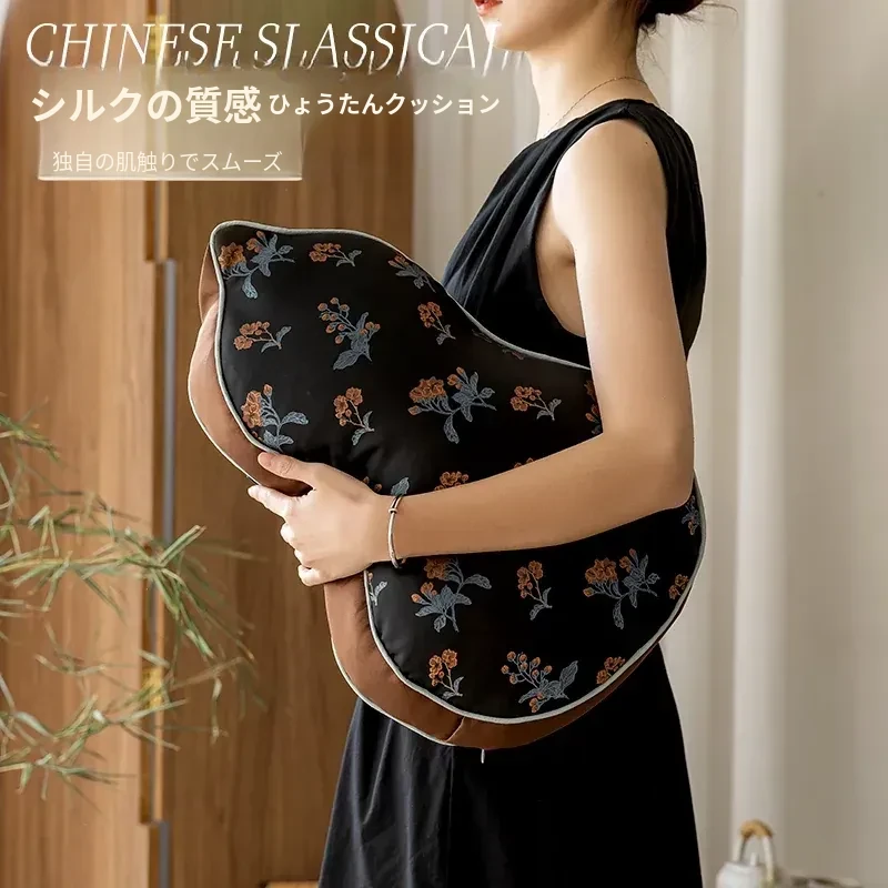 新中式古典花鳥デザインの異形紅木ソファ用クッション、豪華なひょうたんと琵琶の抱き枕。レトロで高級感あふれる背中用クッション、あなたの居住空間を華やかに演出します!
