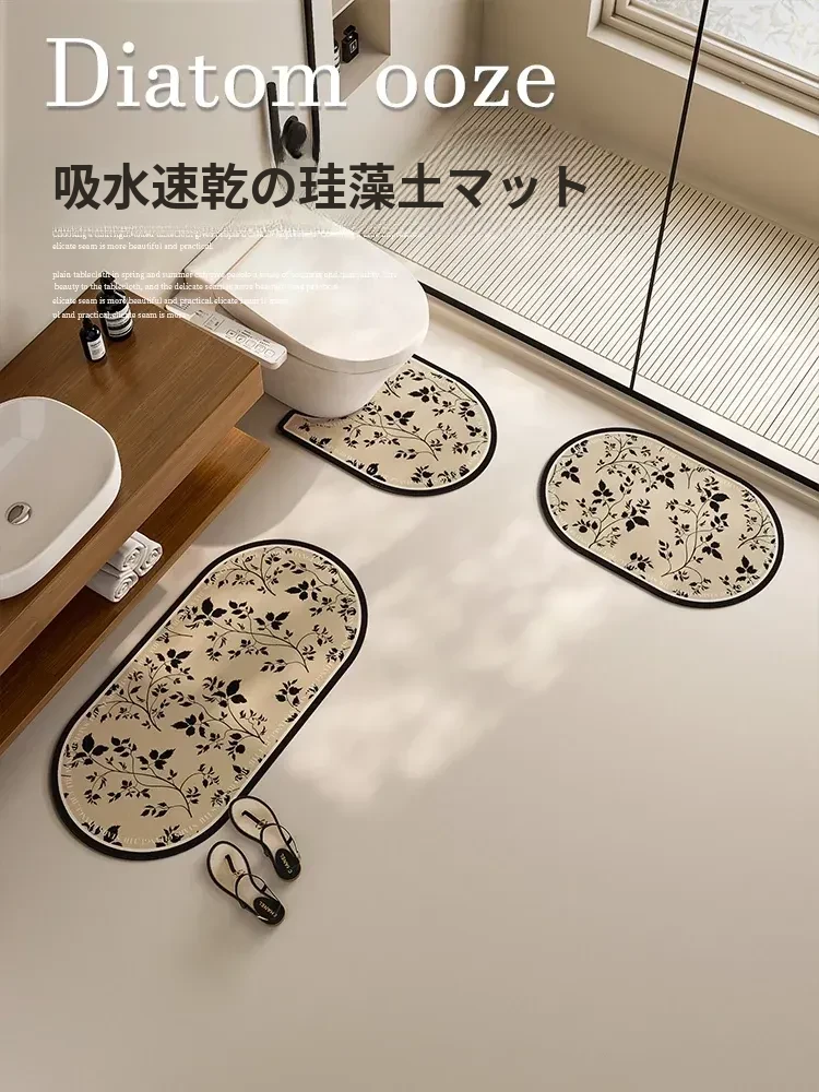 新中式スタイルのユニークな形状の浴室マット、吸水性に優れた珪藻土製ソフトマット、トイレの入り口に最適!滑り止め機能付きで安心、安全な快適空間を演出します。