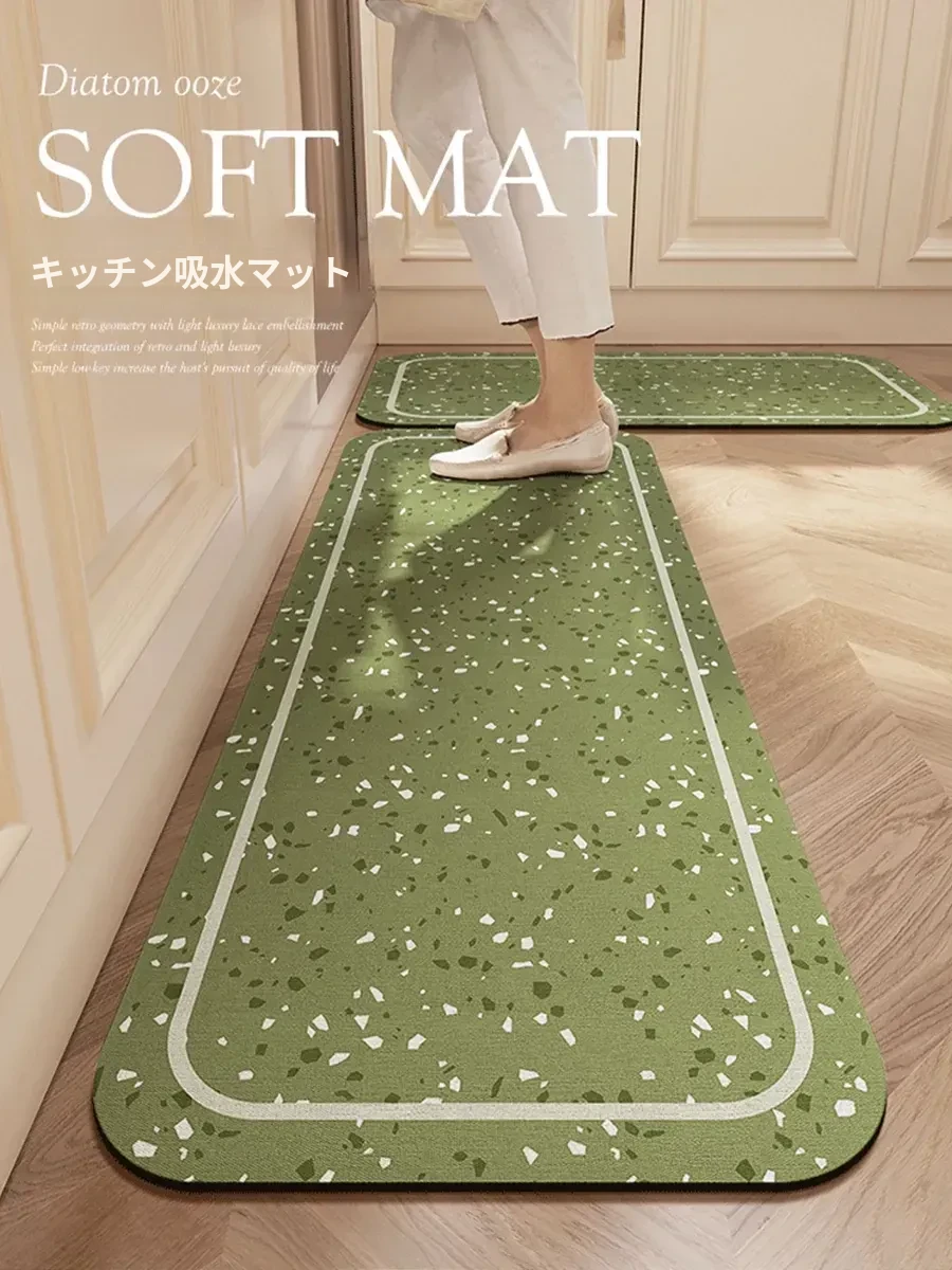 アメリカンスタイルの長方形キッチンマット - 吸水・吸油・滑り止め・耐汚れのデザイン!洗えるからいつでも清潔、便利なシリカゲルマットで快適なキッチンライフをお楽しみください。