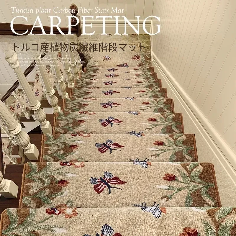 無接着剤自粘型の天然木製階段マット - 滑り止め機能付きで安全・安心!家庭用の回転階段にも最適、室内の階段をおしゃれに演出するカーペットです。