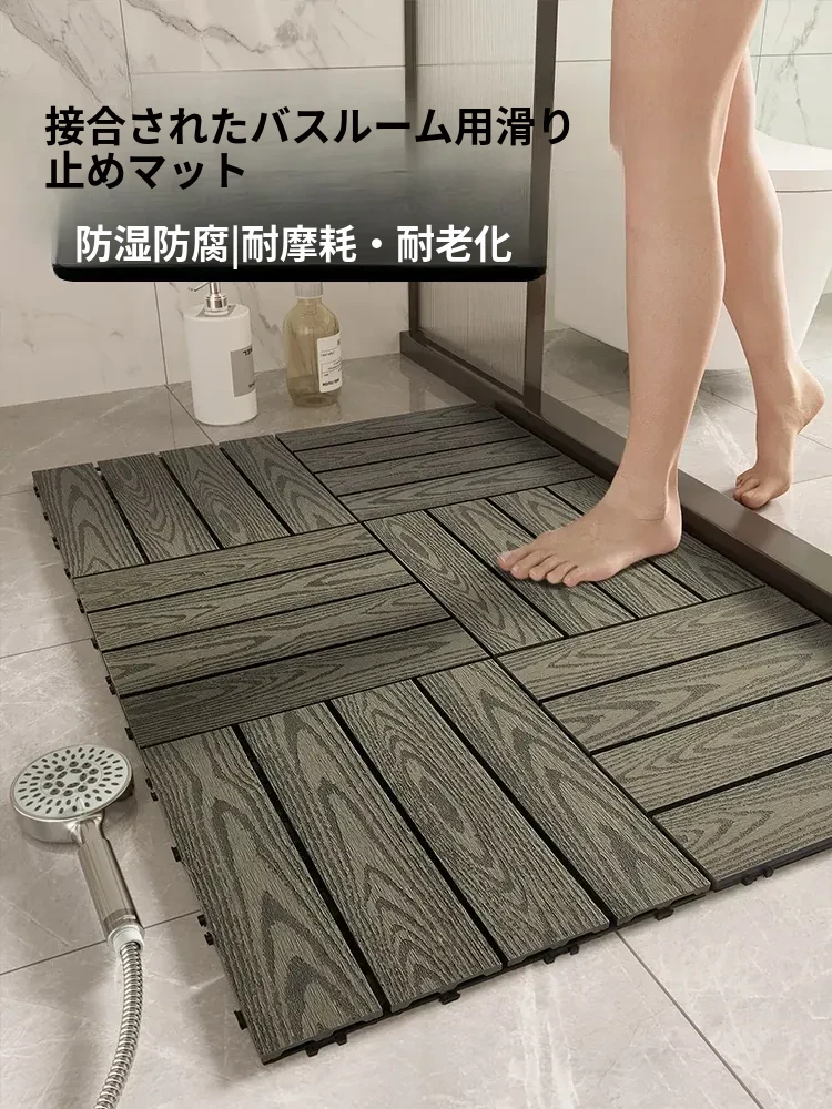 バスルーム用滑り止めマット - 厚手プラスチック木材の接合式フロアマット、シニア向け転倒防止マット、耐腐食性の床用マットで安全な入浴空間を実現!