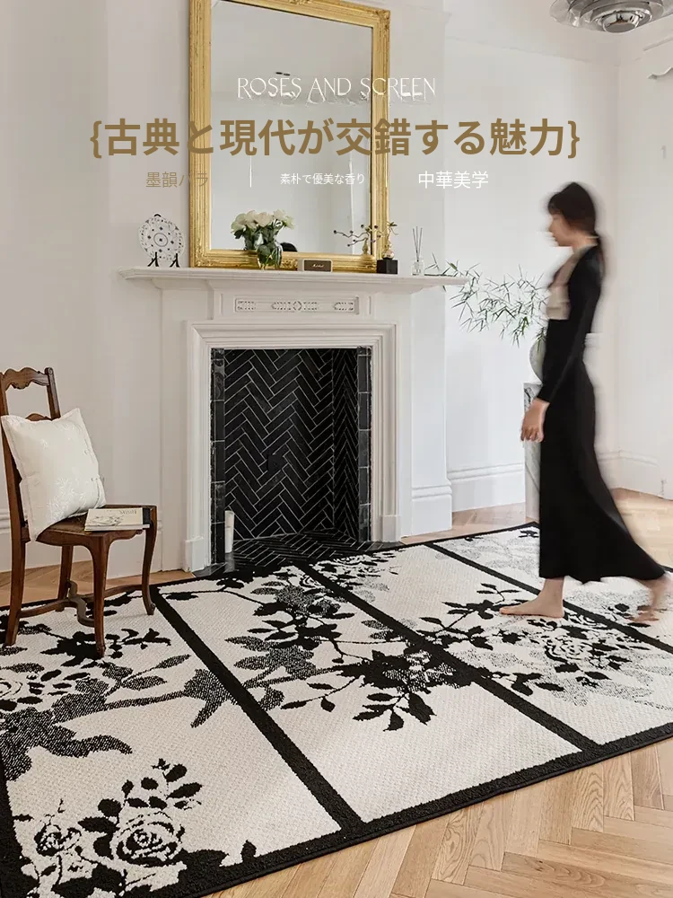 新中式スタイルのリビングルーム用高級ラグ - ソファとテーブルにぴったり!広々とした面積で、アンティーク風の寝室にも最適なベッドサイドカーペット。上質なデザインで、空間を華やかに演出します。