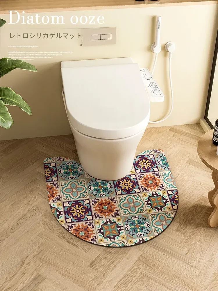トイレ用U型エッジマット - 滑り止め・吸水性抜群のバスルームフットマット、シリカゲル使用で快適なトイレ環境を実現!おしゃれで清潔感溢れるデザイン。