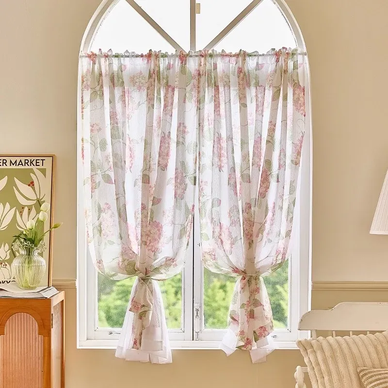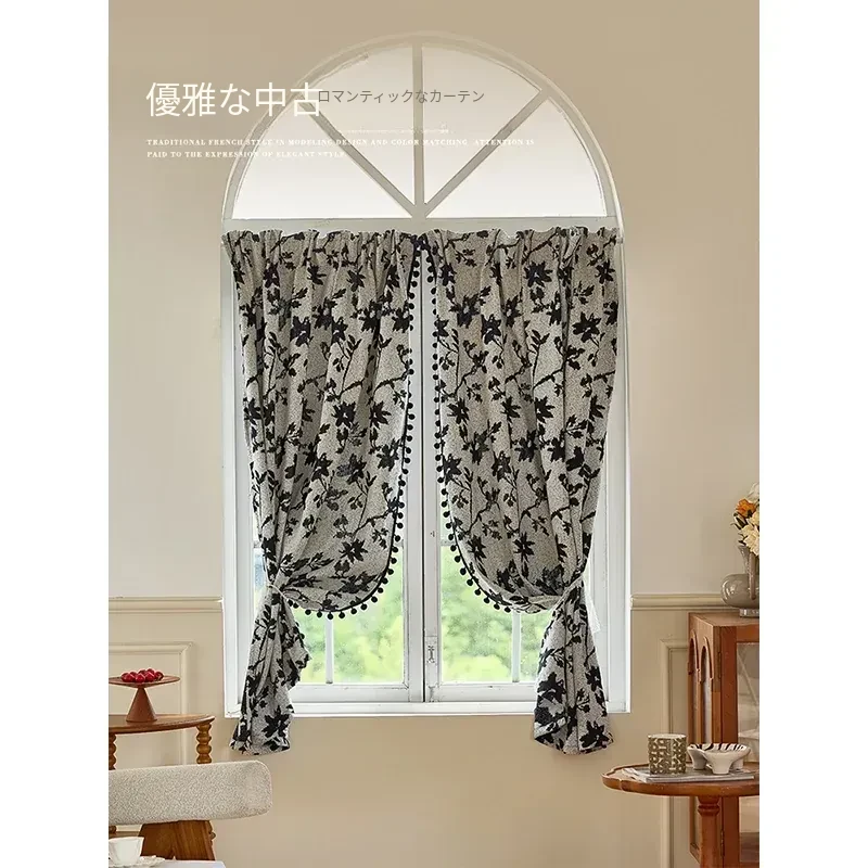 フレンチシックなリビングルームカーテン 高級アーチ型ドアカーテン 穴あけ不要のアンティークスタイル 窓辺にぴったりのハーフカーテン バルコニー用のショートカーテンで優雅な空間を演出!