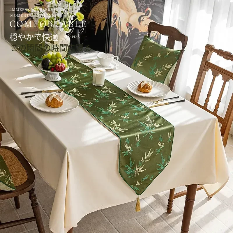 新中式グリーンバンブーハイエンドダイニングテーブルフラッグ布 - 中国風の軽奢華感を演出!高級感あふれる岩板コーヒーテーブル用フラッグで、おしゃれで落ち着いた空間を実現。