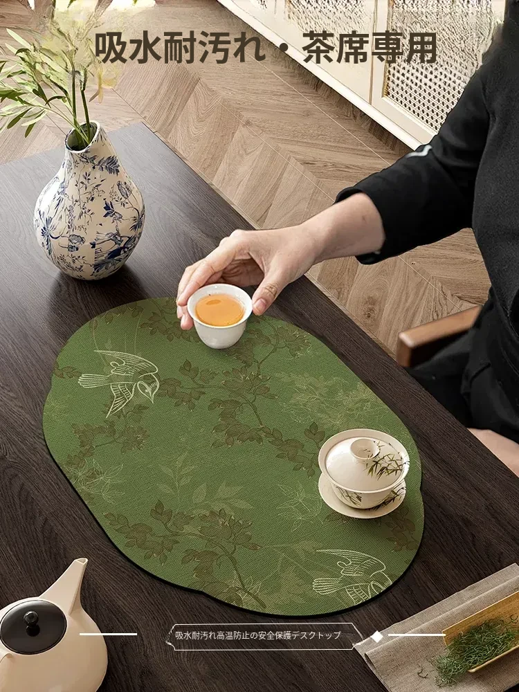 新中式デザインの速乾性・吸水性に優れた茶卓用テーブルマット - おしゃれな書斎でのティータイムを演出!熱を遮断し、快適にお茶を楽しむための最高のアイテムです。
