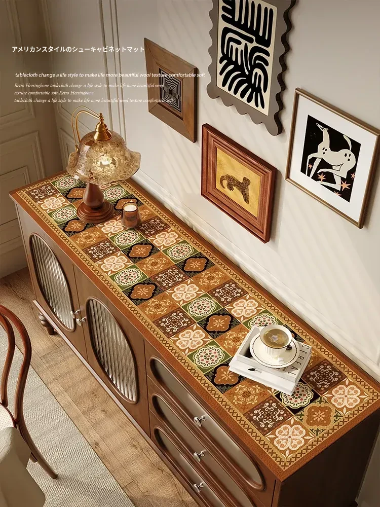 アメリカンレトロシューキャビネットマット - 防水&防油仕様、洗濯不要!テレビキャビネットやサイドボードのテーブル保護に最適な長方形テーブルマットで、スタイリッシュなインテリアを演出します。