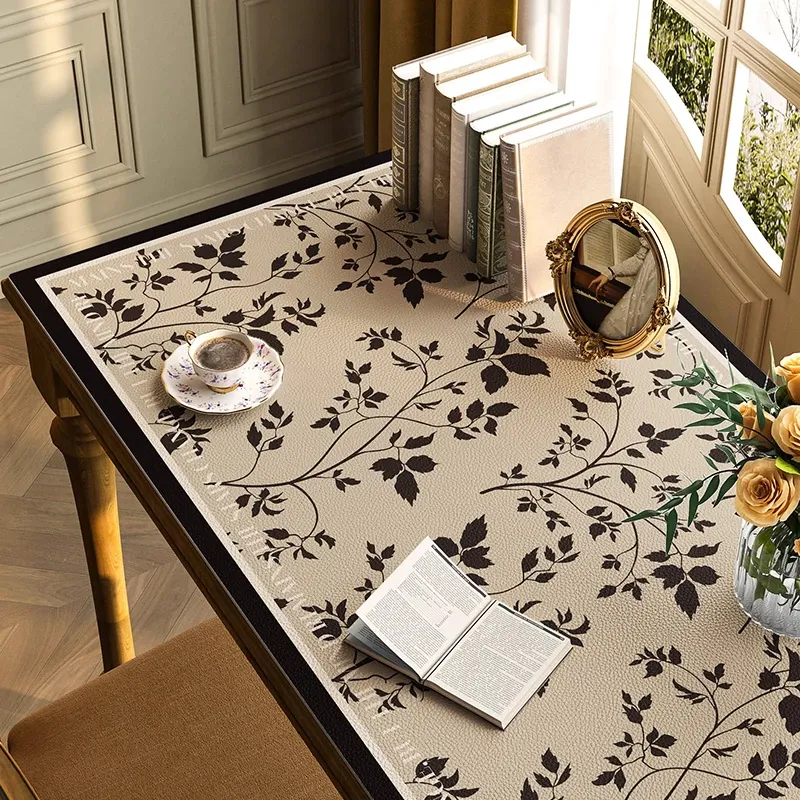新中式スタイルの高級感あふれる軽奢テーブルマット!防塵・防熱機能付き、黒色のスクエアレザー製テーブルクロス。撥水・撥油でお手入れ簡単!美しい食卓を演出します。