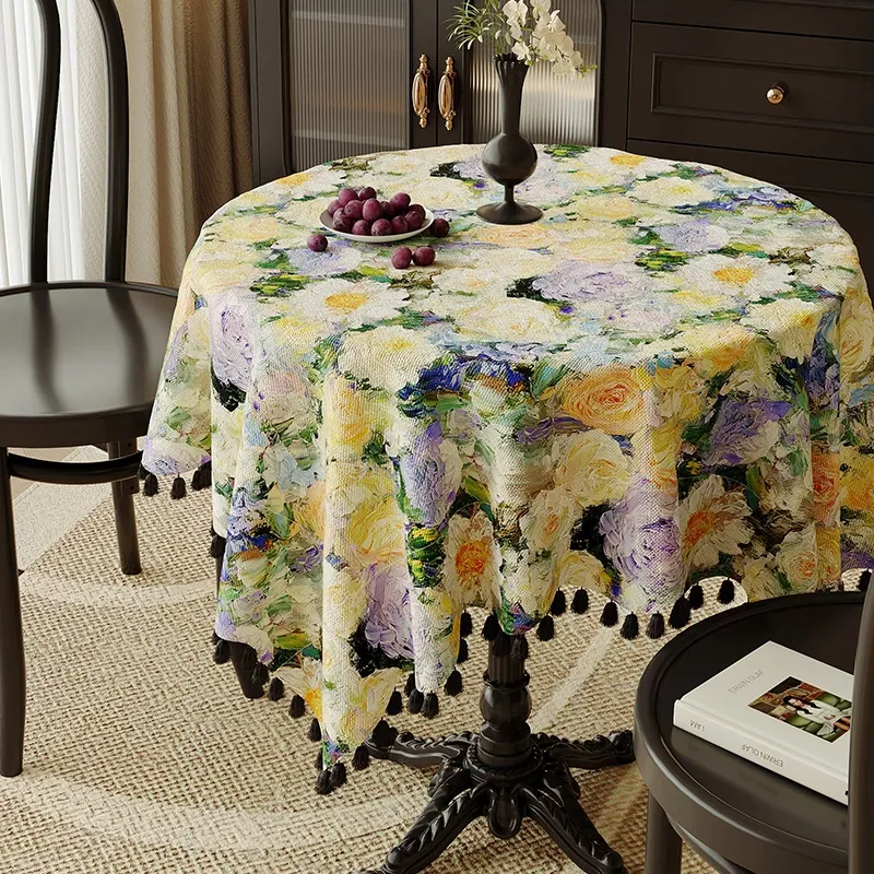 油絵風の円形テーブルクロス|アメリカンラグジュアリーの高級感|リビングやティーテーブルにぴったりの雰囲気を演出|ホコリから守るおしゃれな台布