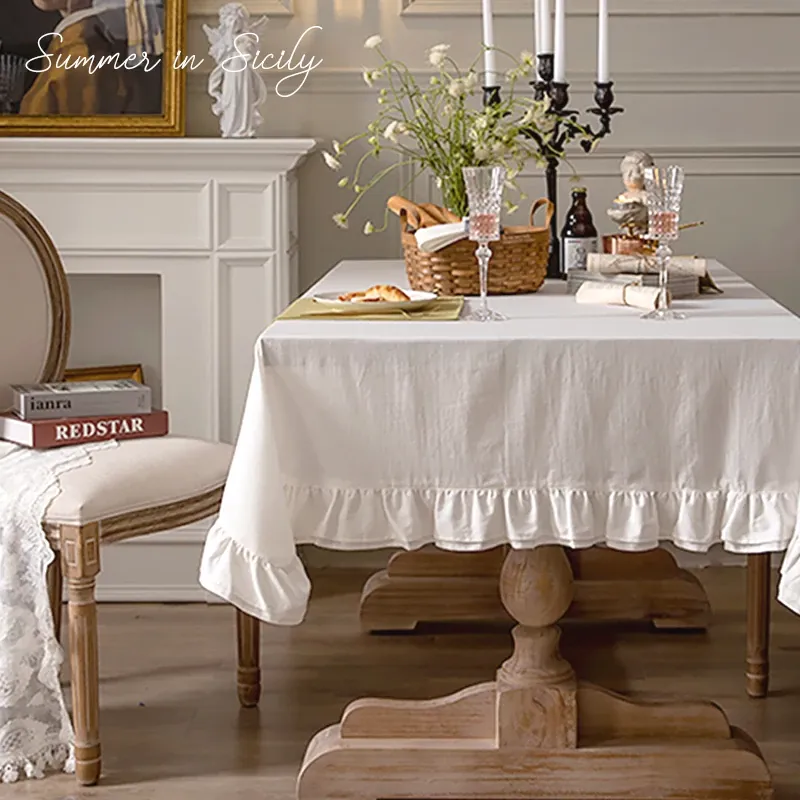 高級感溢れるシンプルなデザイン!エレガントな白いテーブルクロス。長方形のダイニングテーブルや書斎デスクにぴったり。スカート付きでおしゃれなインテリアを演出!テーブルを美しく飾るアイテム。