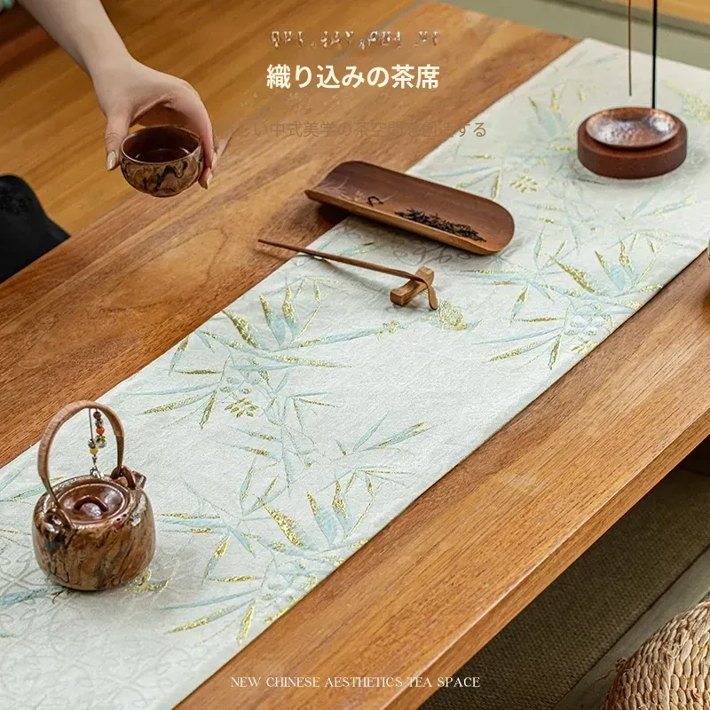 高級感漂う新中式禅スタイルの織り錦茶席!防水&乾きやすいテーブルランナー、茶卓を一層引き立てるデザイン。おしゃれで実用的な茶道具、あなたのティータイムを格上げします!