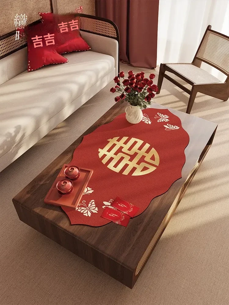 結婚祝いの赤い花柄テーブルクロス - 防水・防熱で安心!新婚生活を彩るテーブルセッティングに最適な装飾布。特別な日を華やかに演出し、思い出に残る瞬間をお手伝いします!