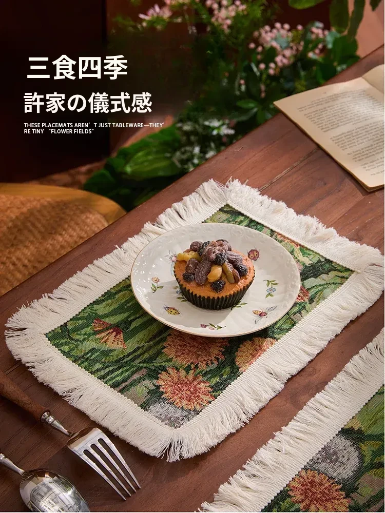 アメリカンカントリー風レトロファブリックランチョンマット - 高級感漂うライトラグジュアリー、一人用家庭食にぴったり!温度を気にせず使える、心地よい雰囲気を演出します。