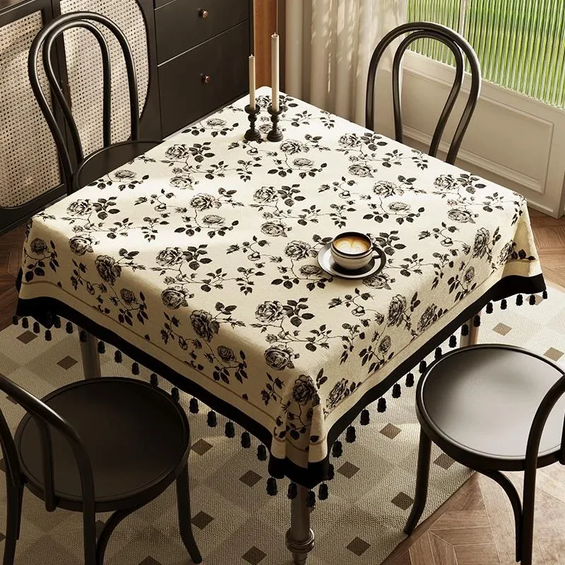 フレンチスタイルの正方形テーブルクロス - タッセル付きのアンティーク風で高級感あふれる防塵・美観カバー。お洒落なティーテーブルにぴったりのアイテムです!
