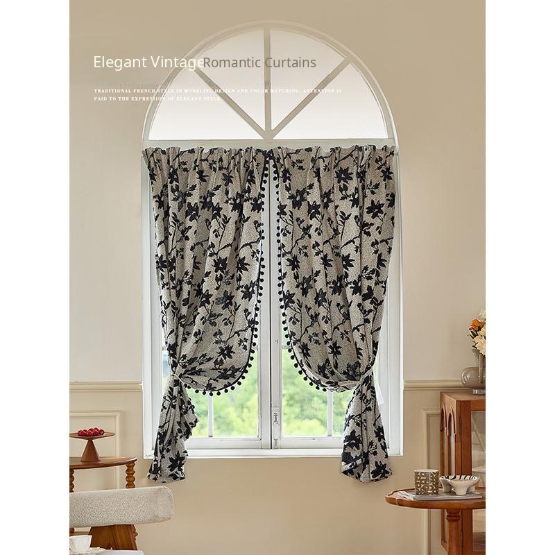 French Luxury Living Room Curtains - High-End Arched Door Drapes, No Drilling Required, Vintage-Style Half Curtains for Bay Windows and Balconies, Perfect for Elegant Home Décor.