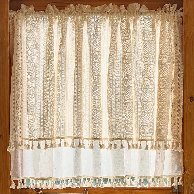 American-Style Lace Sheer Curtains - Home Partition Half Curtains for Bedroom, Kitchen, and Bay Window Decoration, No Drilling Required for Easy Installation!