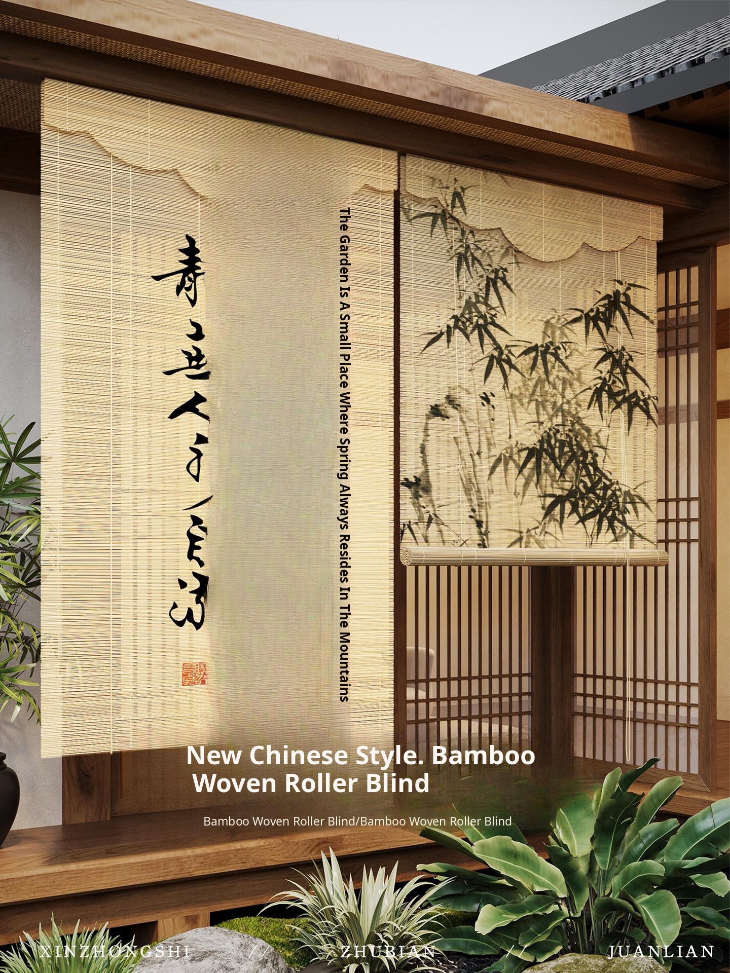 Song Aesthetics Bamboo Roller Shades - New Chinese Style Antique Tea Room Bamboo Woven Hanging Curtains, Room Divider, Sunshade Window Curtains, Wall Decoration