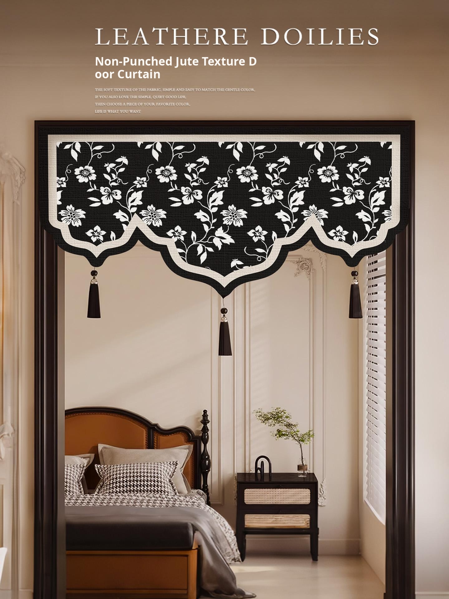 French Style Shaped Curtain Head - No Drill Door Curtain, 2026 New Short Curtain for Room Dividers, Privacy, and Decorative Fabric - Perfect for Stylish Home Décor!