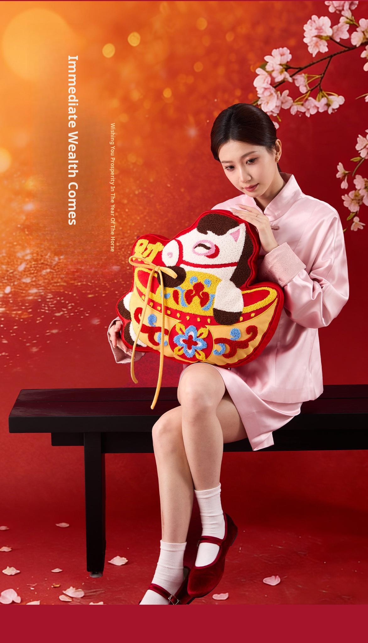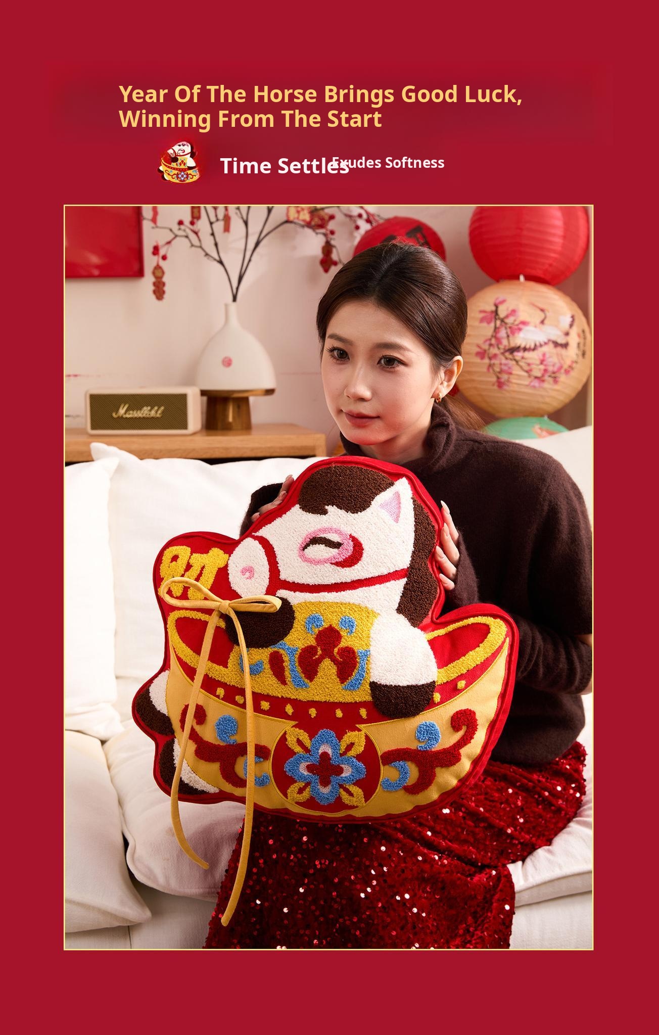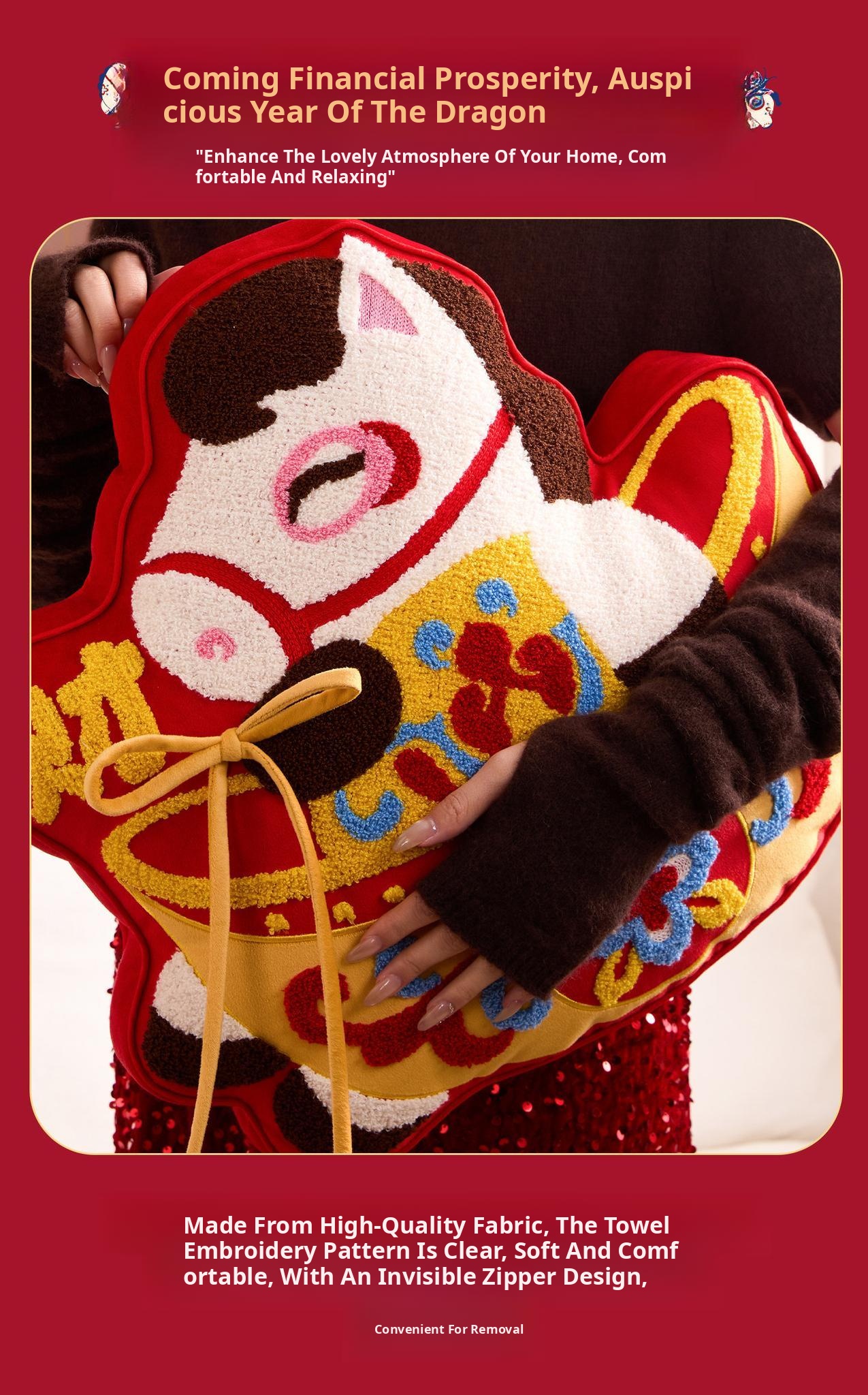 2026 New Year Red Horse Pillow Cover – Festive and Elegant Year of the Horse Sofa Cushion, Perfect for Your Bed or Living Room Decor