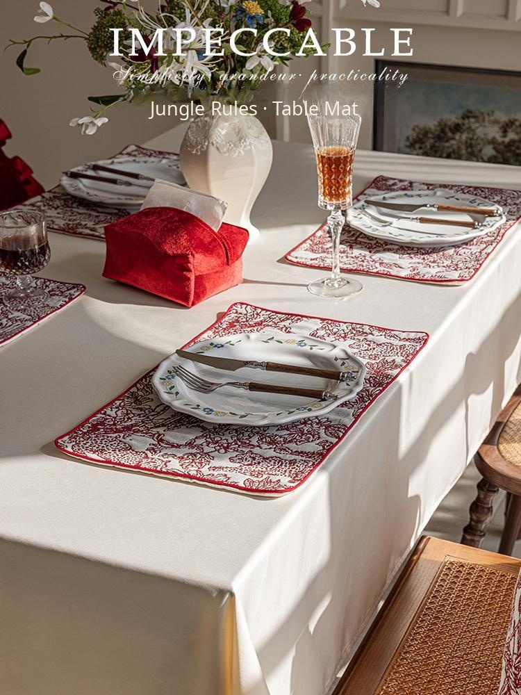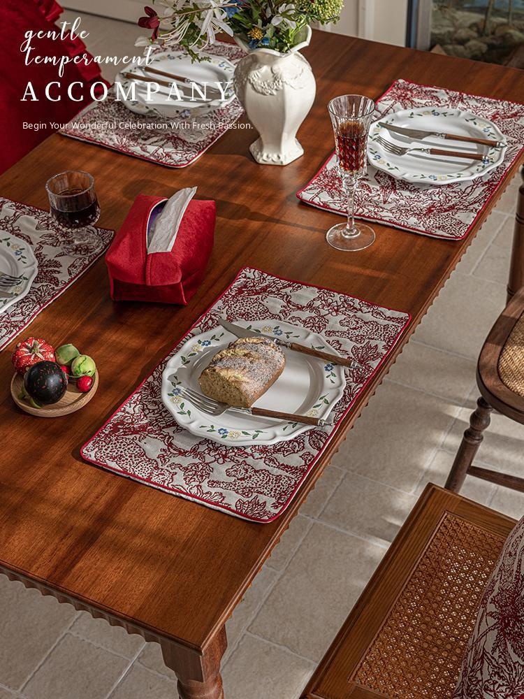 American Style Red Festive Table Mat - Heat-Resistant Dining Pad for Table Protection, Anti-Scalding, and High-Temperature Coaster