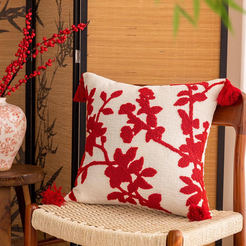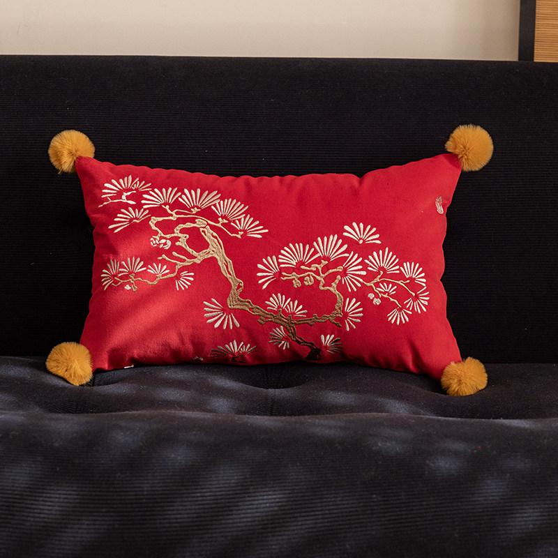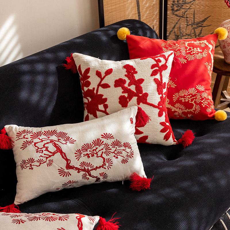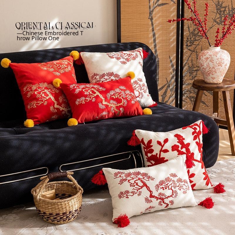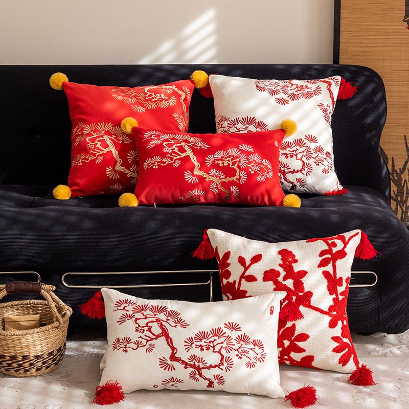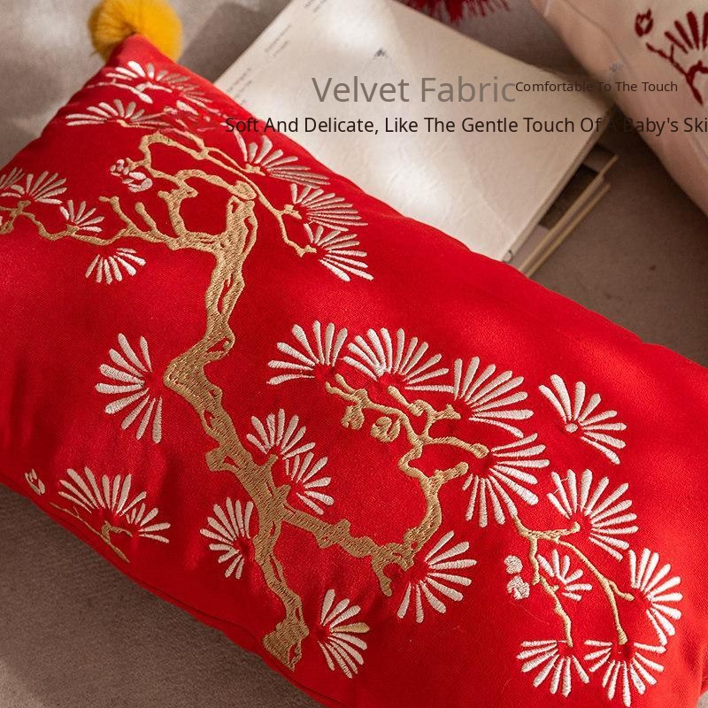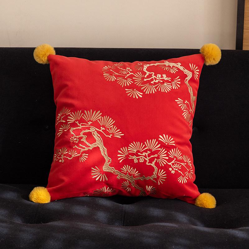 Chinese Style Red Decorative Pillow Covers - Festive Cushions for Living Room Sofa and Bed - Removable and Washable Back Support Pillows for a Cozy Atmosphere