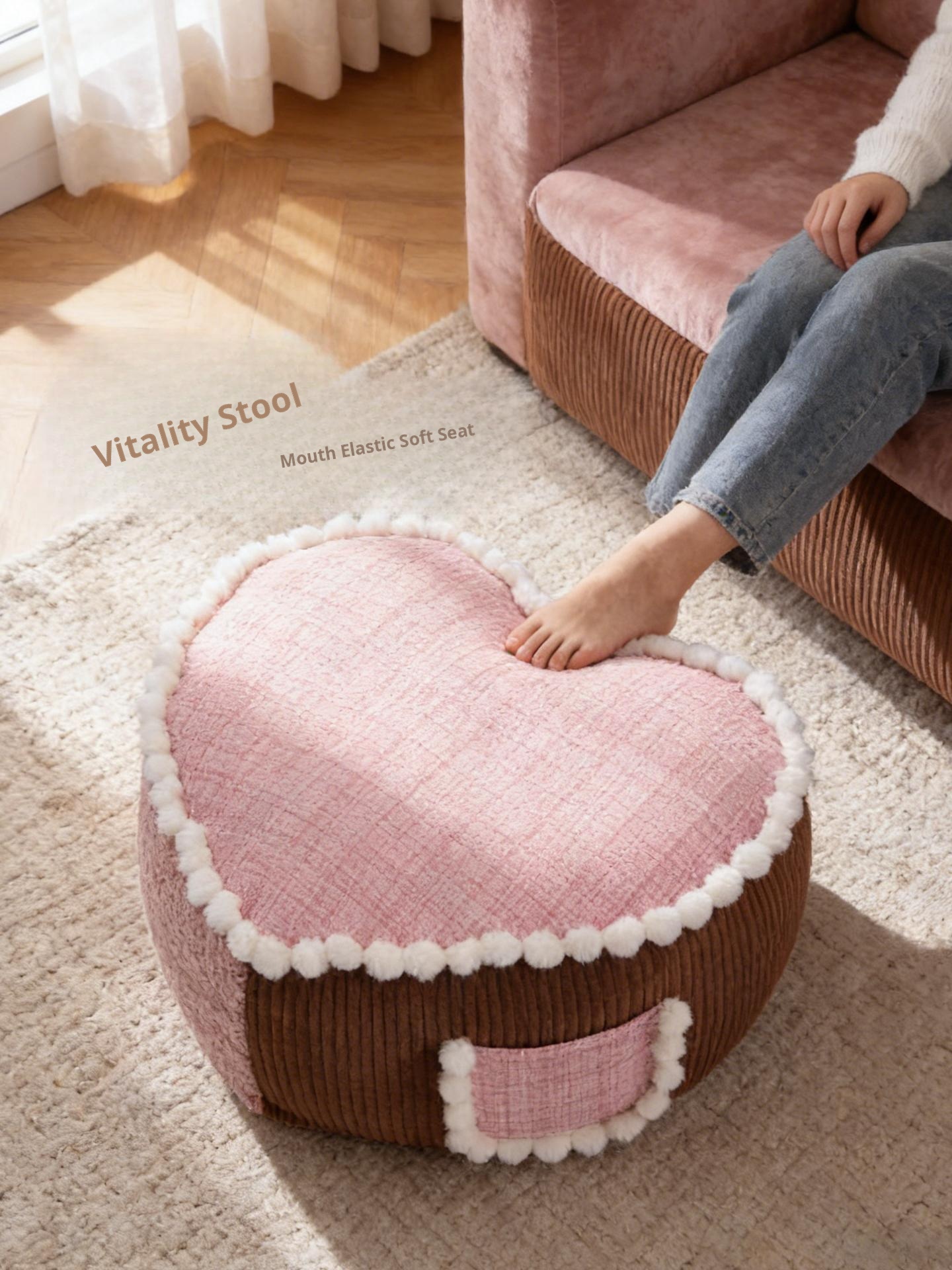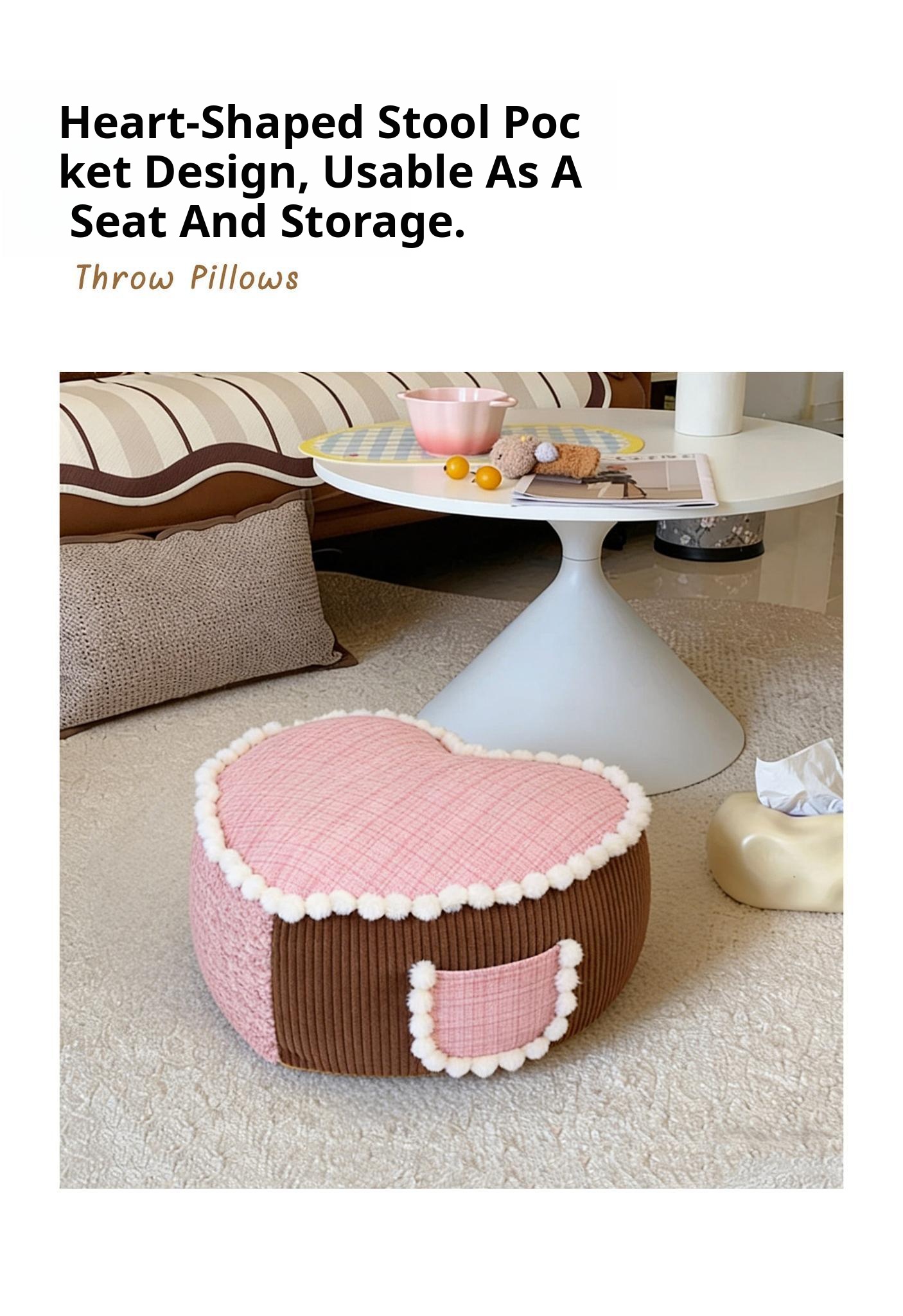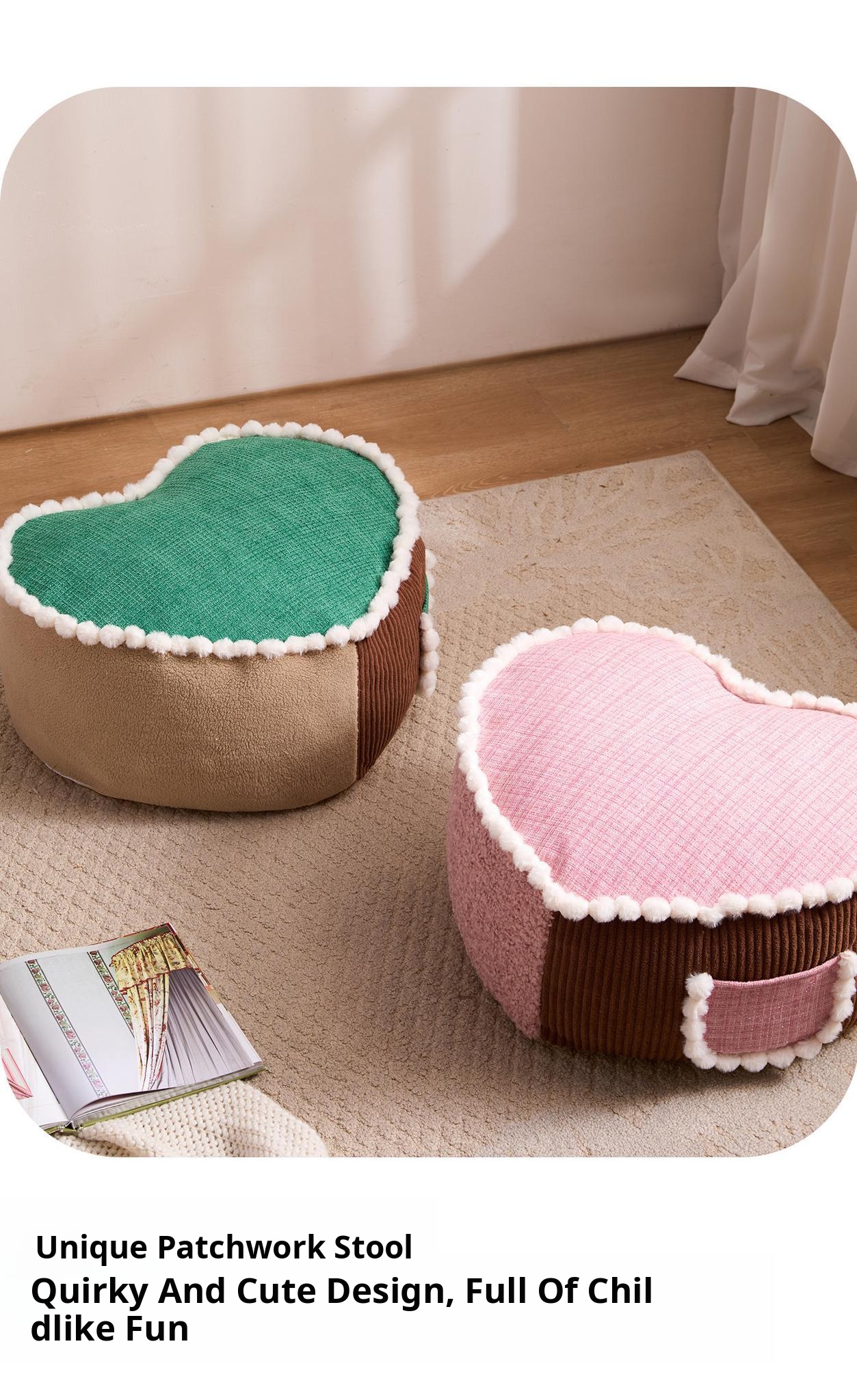 Creative Heart-Shaped Stool – Versatile Couch, Coffee Table, and Ottoman for Your Living Room. Perfect for Lazy Days, Window Nooks, and Easy Cleaning. A Must-Have for Comfort Lovers!