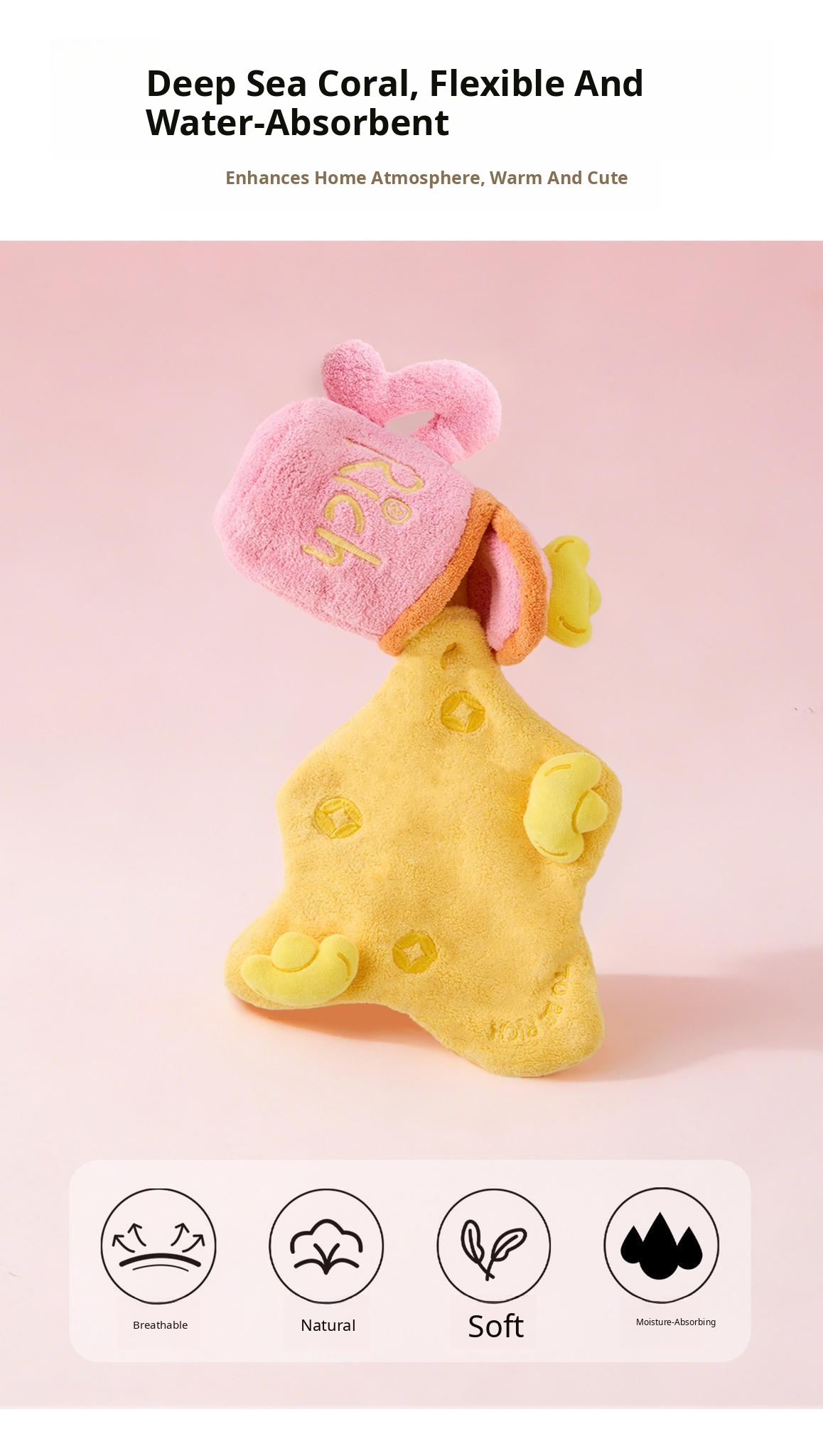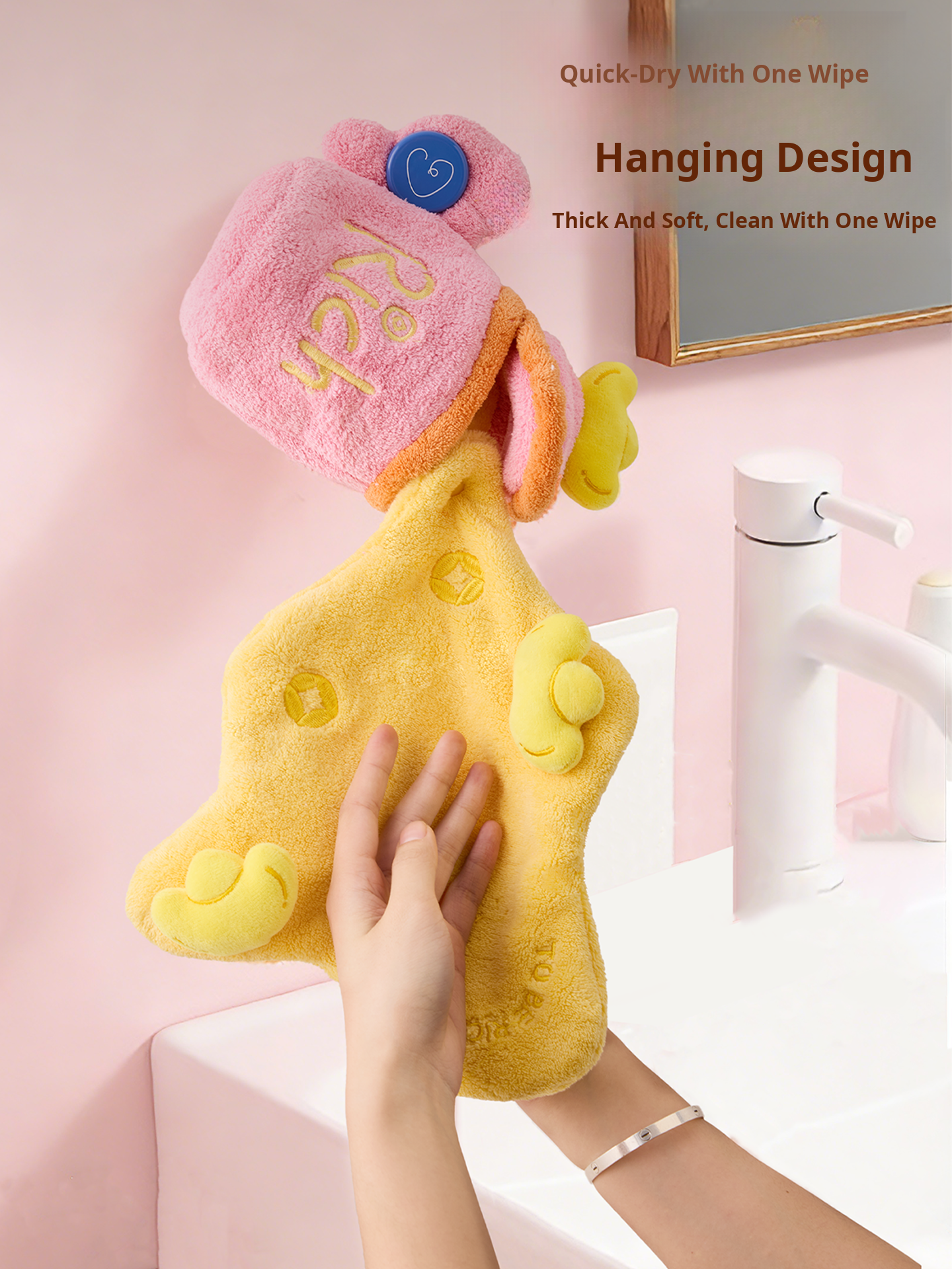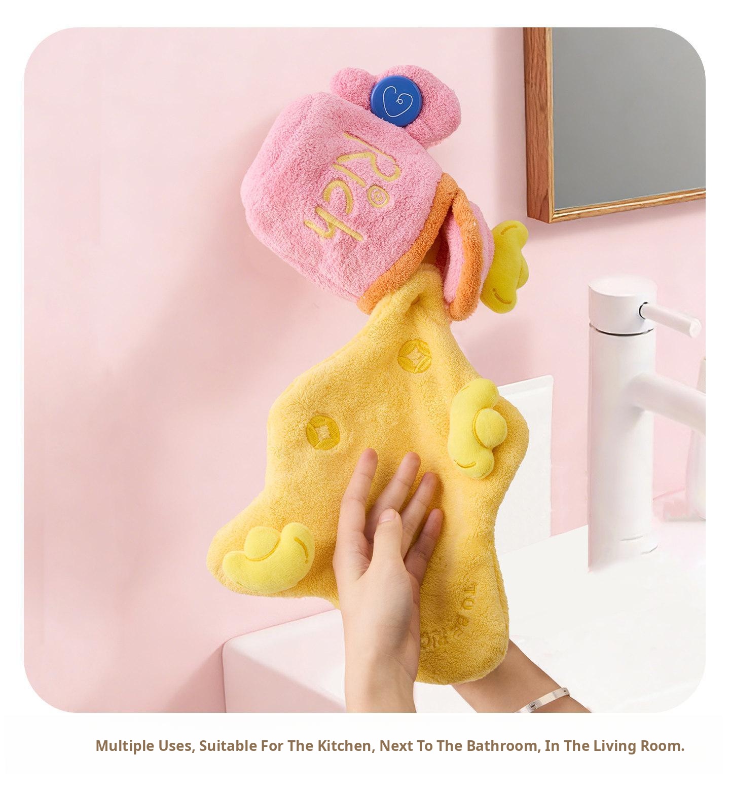 Cute Cartoon Creative Hand Towels - Hanging Style, Thickened Super Absorbent Kids' Towels for Kindergarten, Perfect for Bathroom Use, Hygienic and Fun!