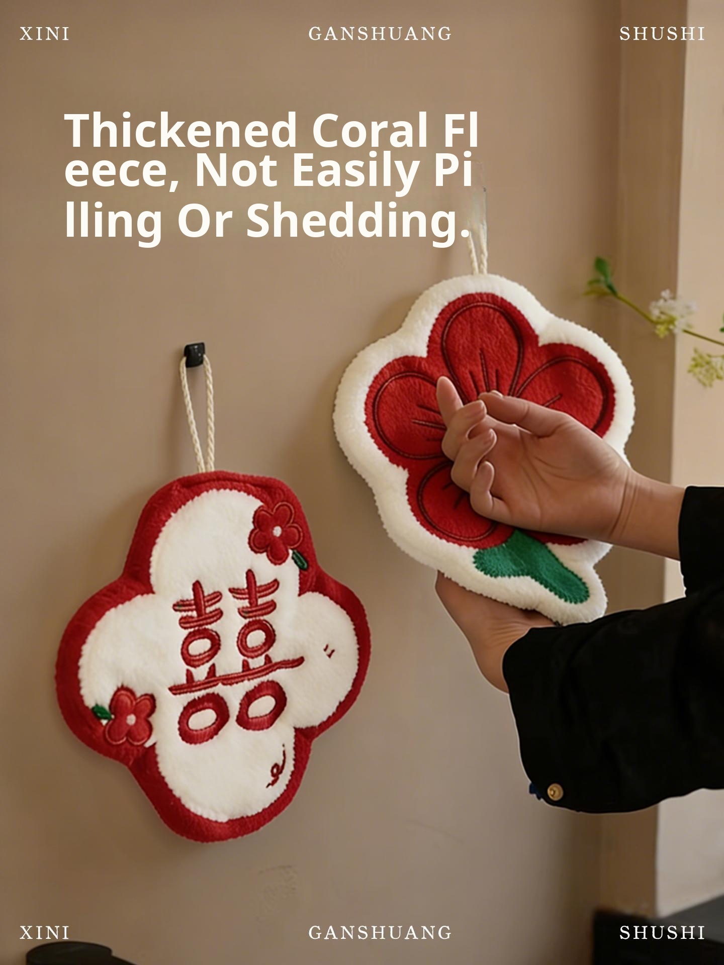 Hua Xi Ying Men Coral Velvet Embroidered Hand Towel