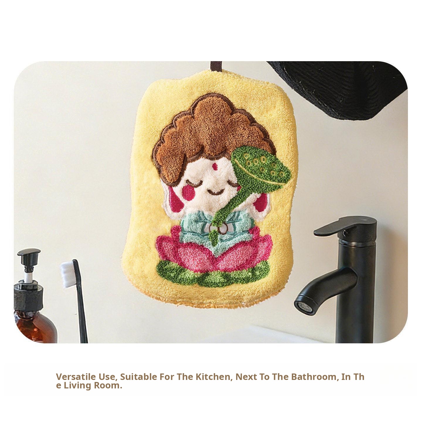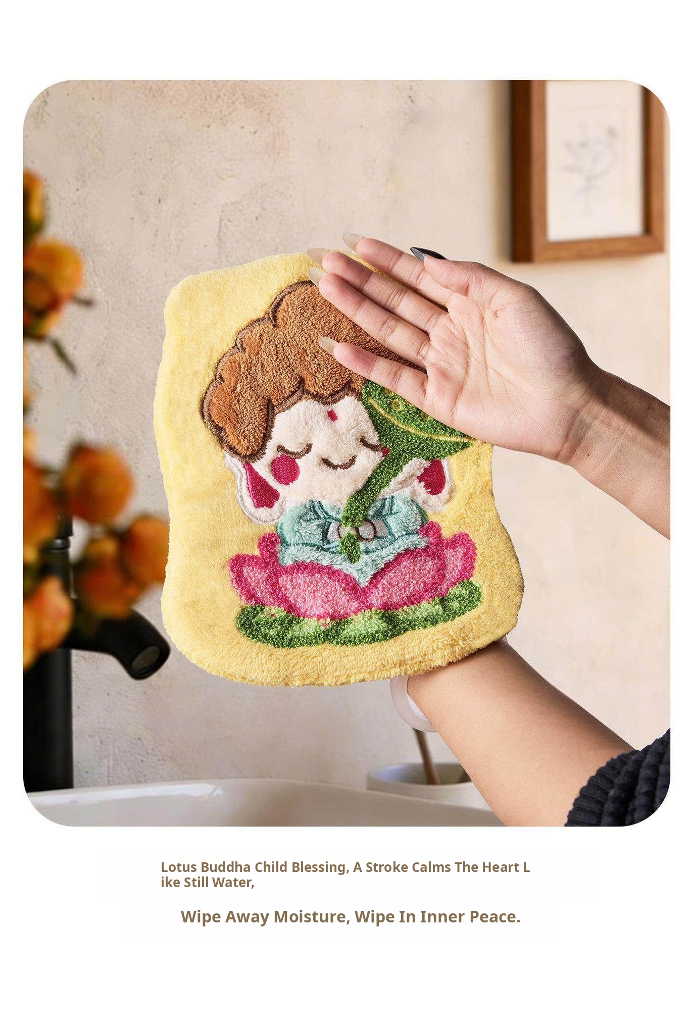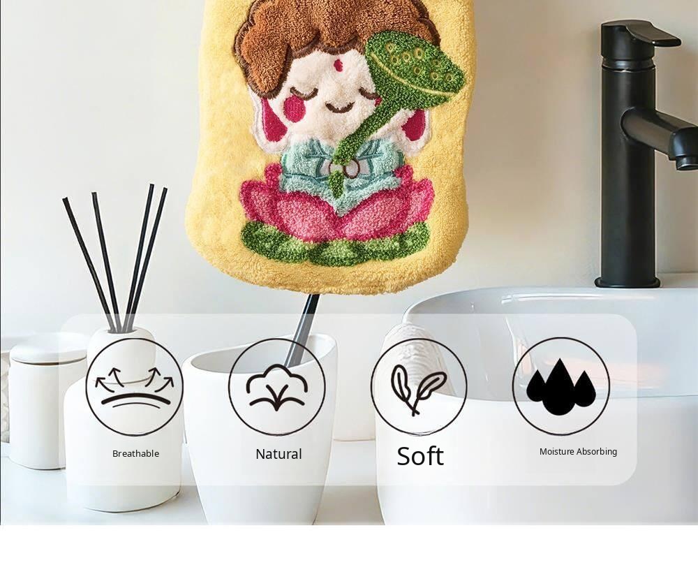 Cute Thickened Lotus Buddha Children's Hand Towels - Super Absorbent Wall-Mounted Bath and Kitchen Cleaning Cloths, Perfect for Quick Drying and Stylish Home Decor!