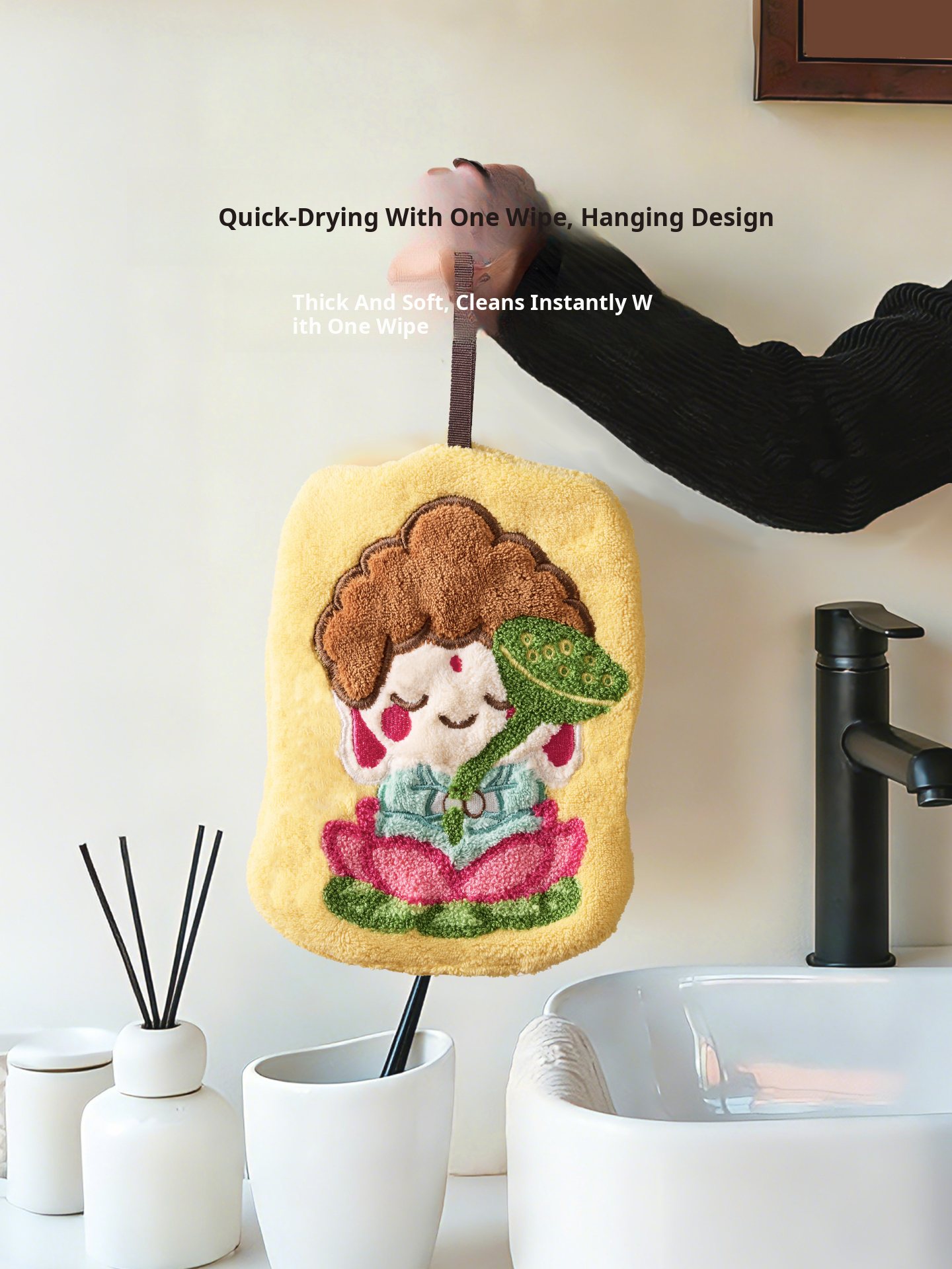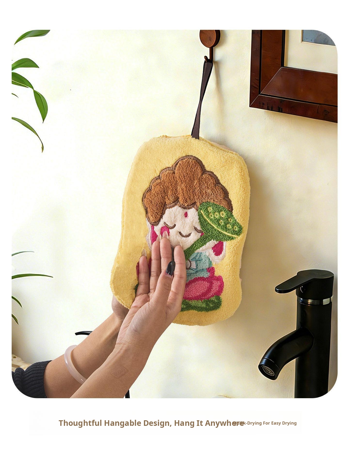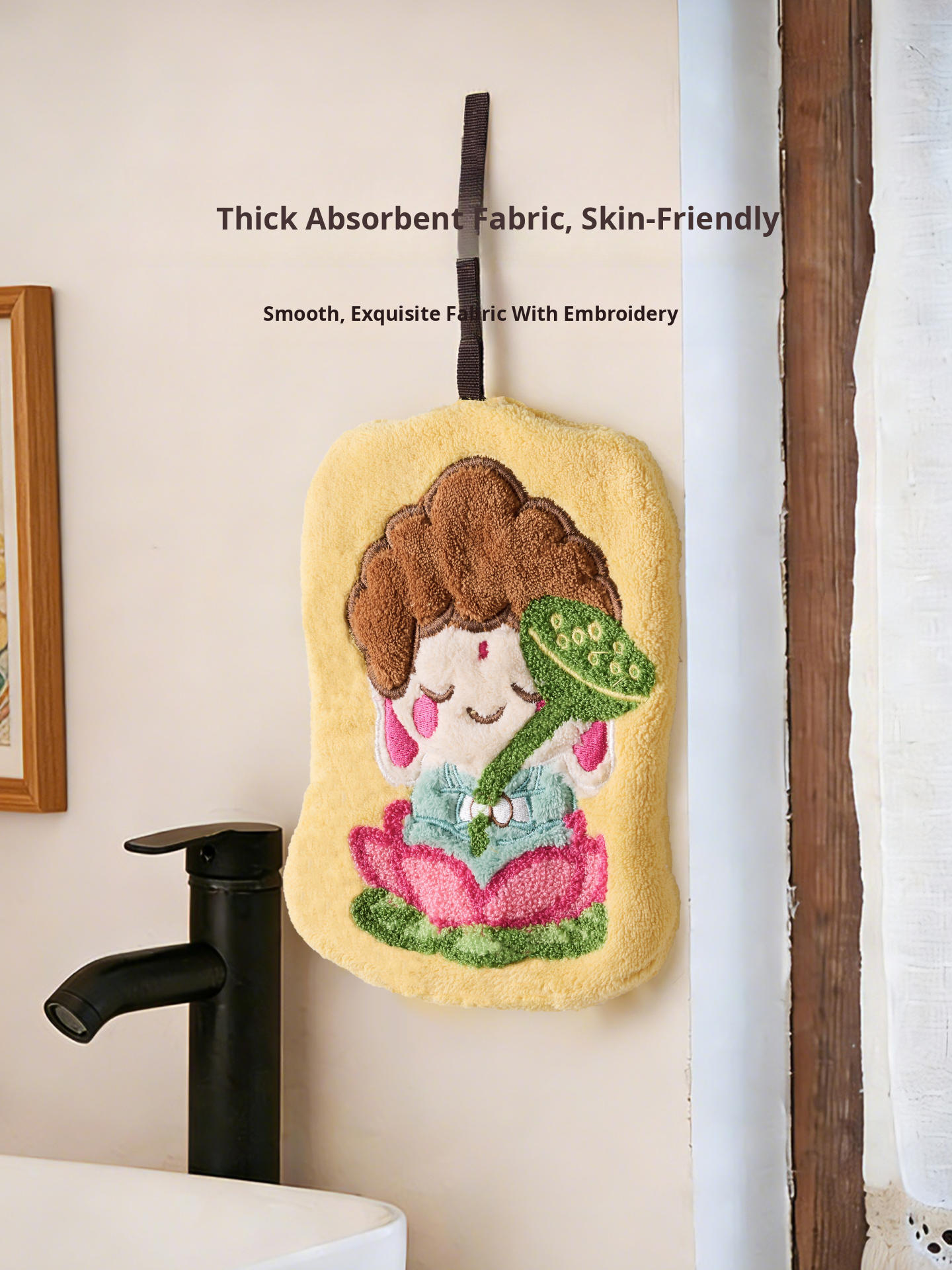 Cute Thickened Lotus Buddha Children's Hand Towels - Super Absorbent Wall-Mounted Bath and Kitchen Cleaning Cloths, Perfect for Quick Drying and Stylish Home Decor!