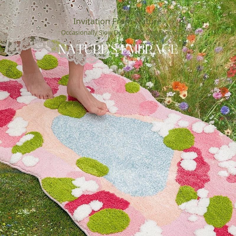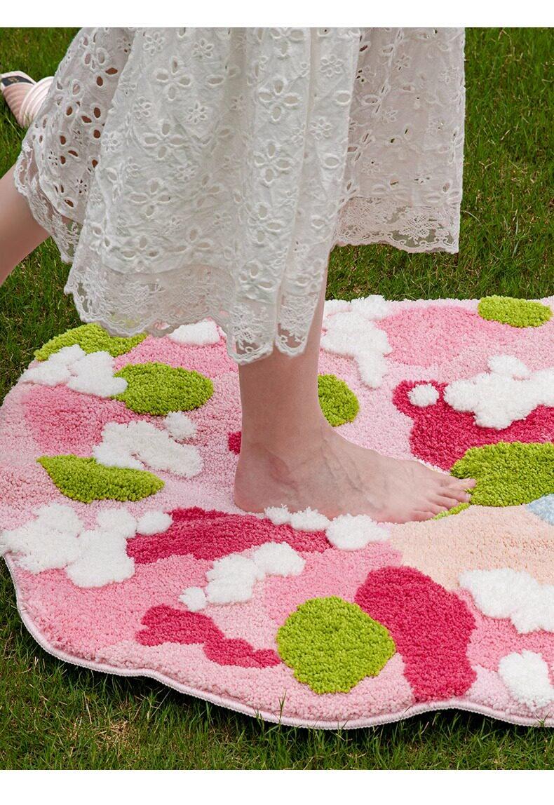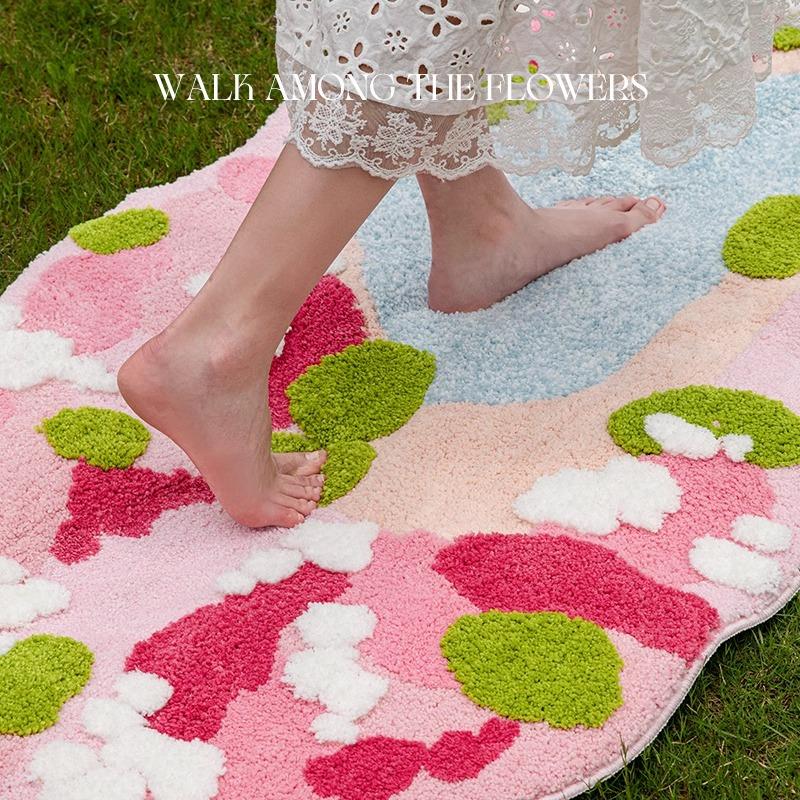 Flower and Her Flocked Tpe Floor Mat - Irregular Shape