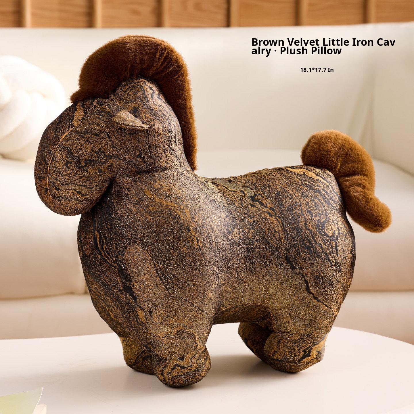 Brown Velvet Little Cavalry Plush Pillow