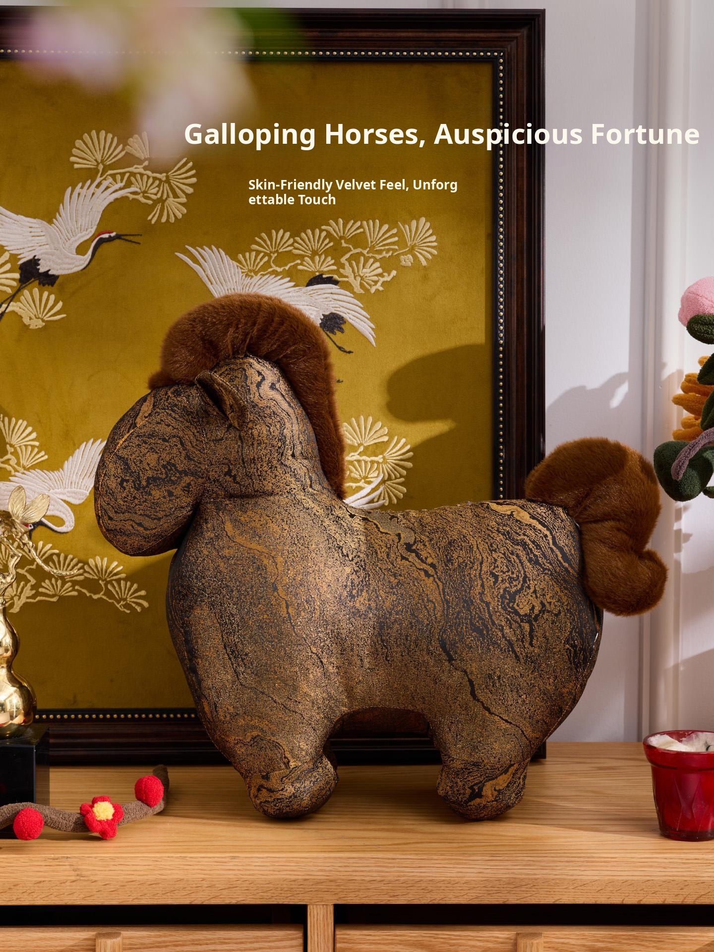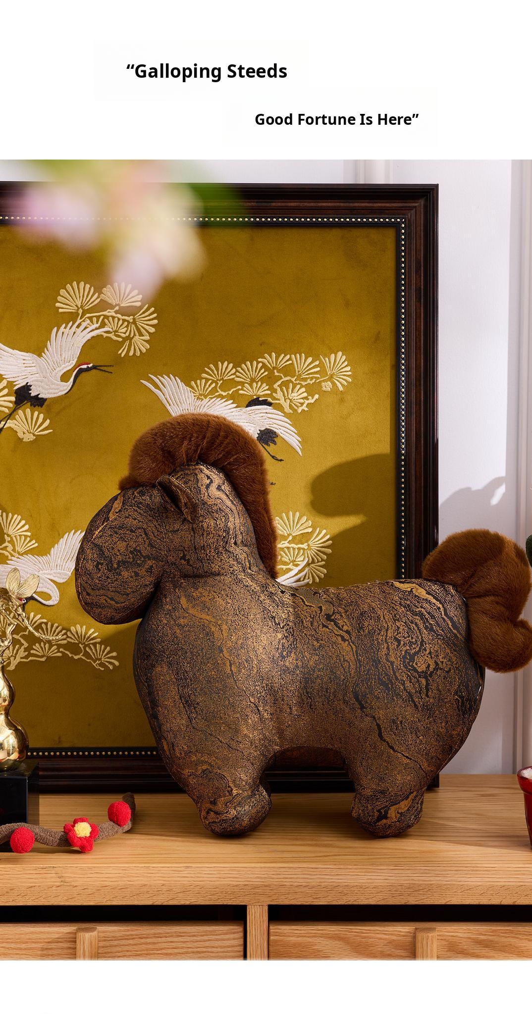 Elegant Luxury Horse Year Decorative Throw Pillow – Unique Shaped Cushion for Living Room Sofa, Office, and Creative Display Spaces – Perfect for Stylish Interiors