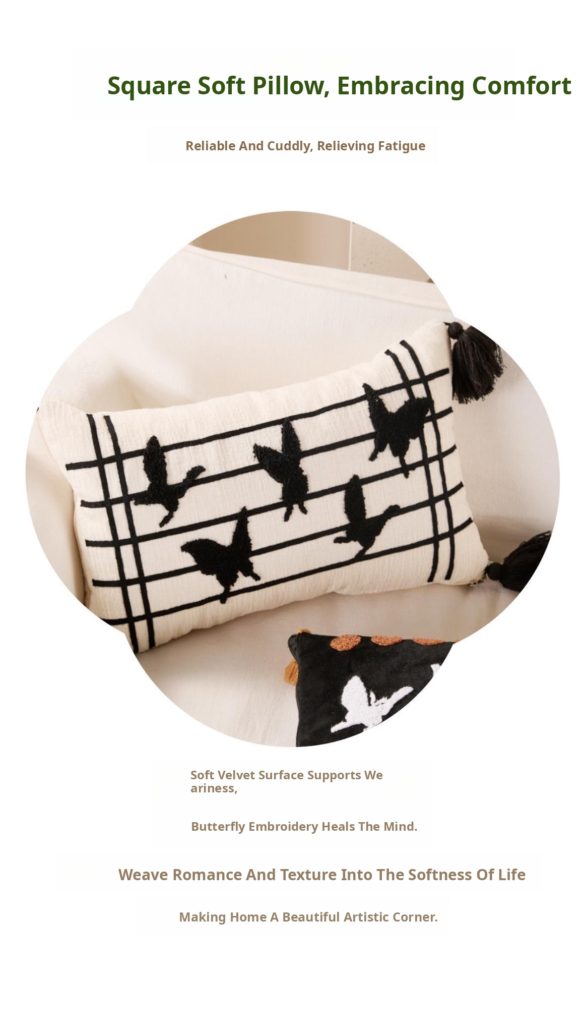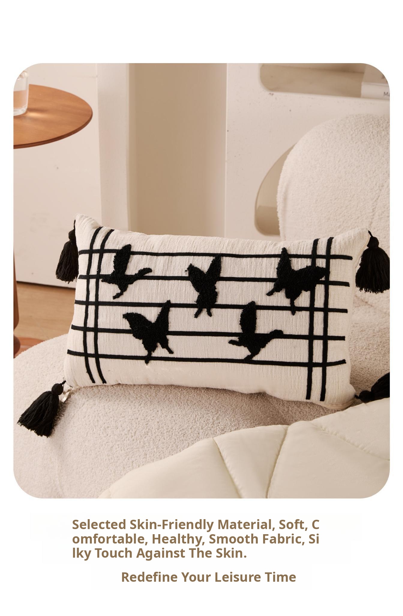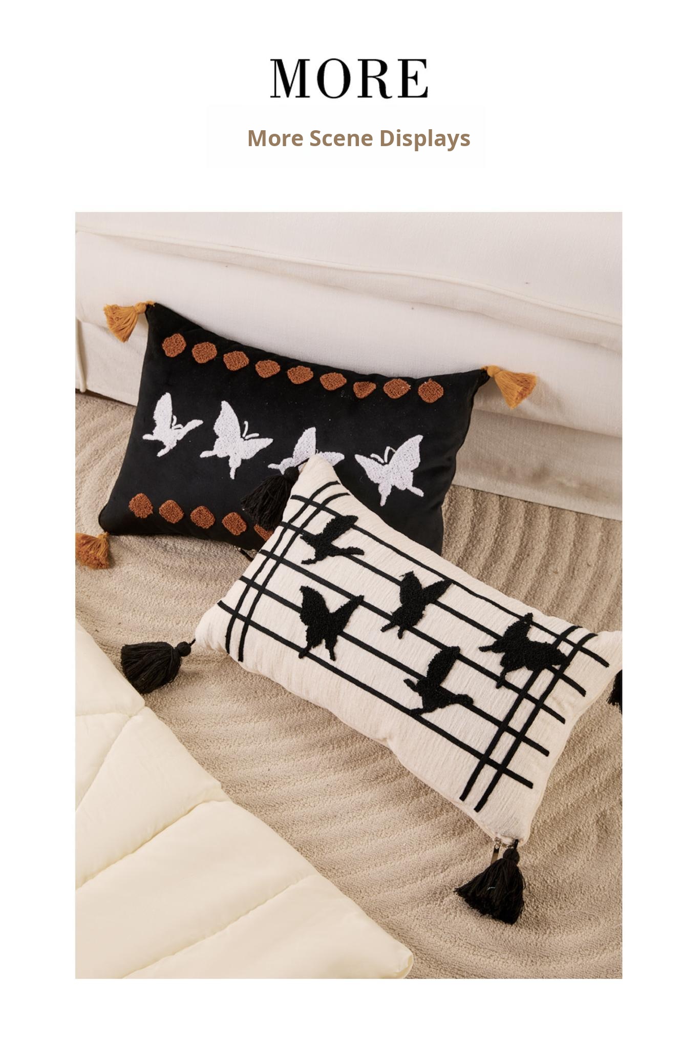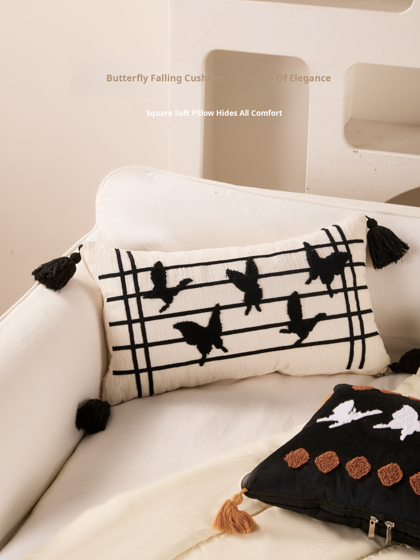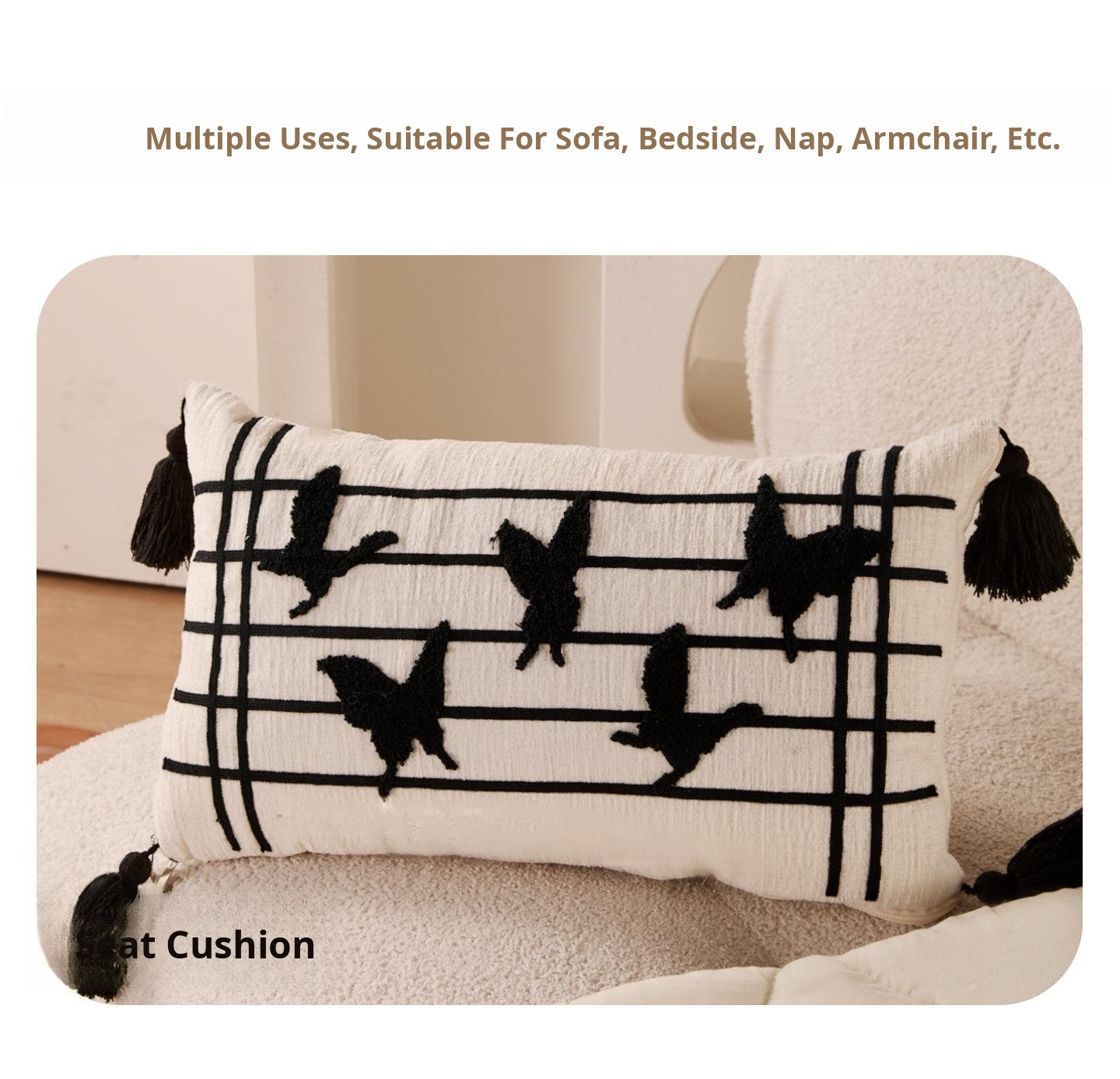 Butterfly Embroidered Black Square Butterfly Pillow(11.81in*19.69in Pillow Core + Pillowcase)