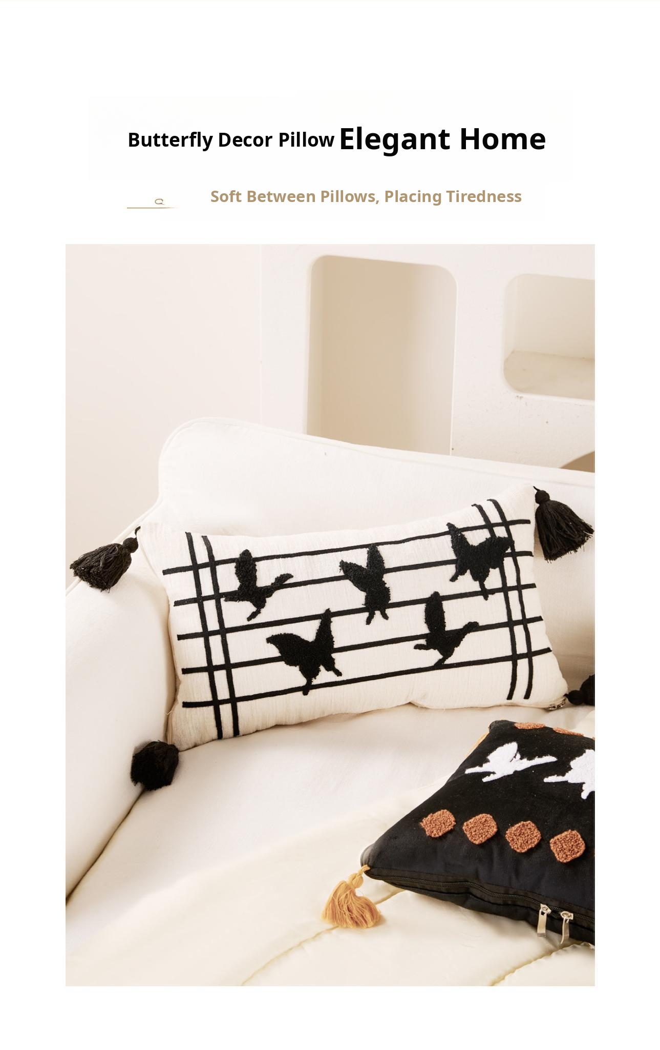 Elegant New Chinese Style Tassel Butterfly Cushion - Luxurious Black Sofa Back Support Pillow for Living Room, Perfect for Bed and Leg Support
