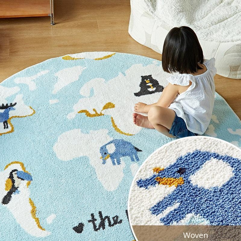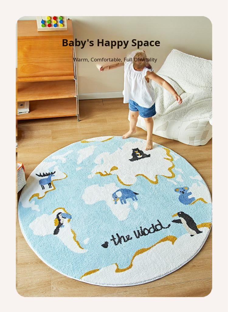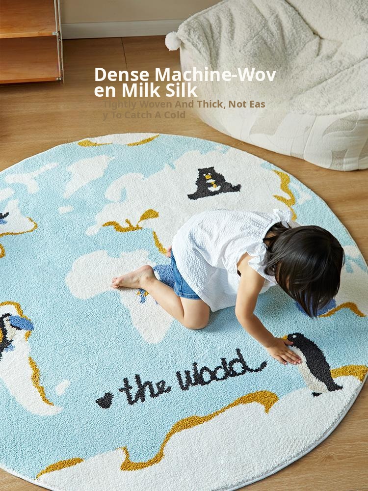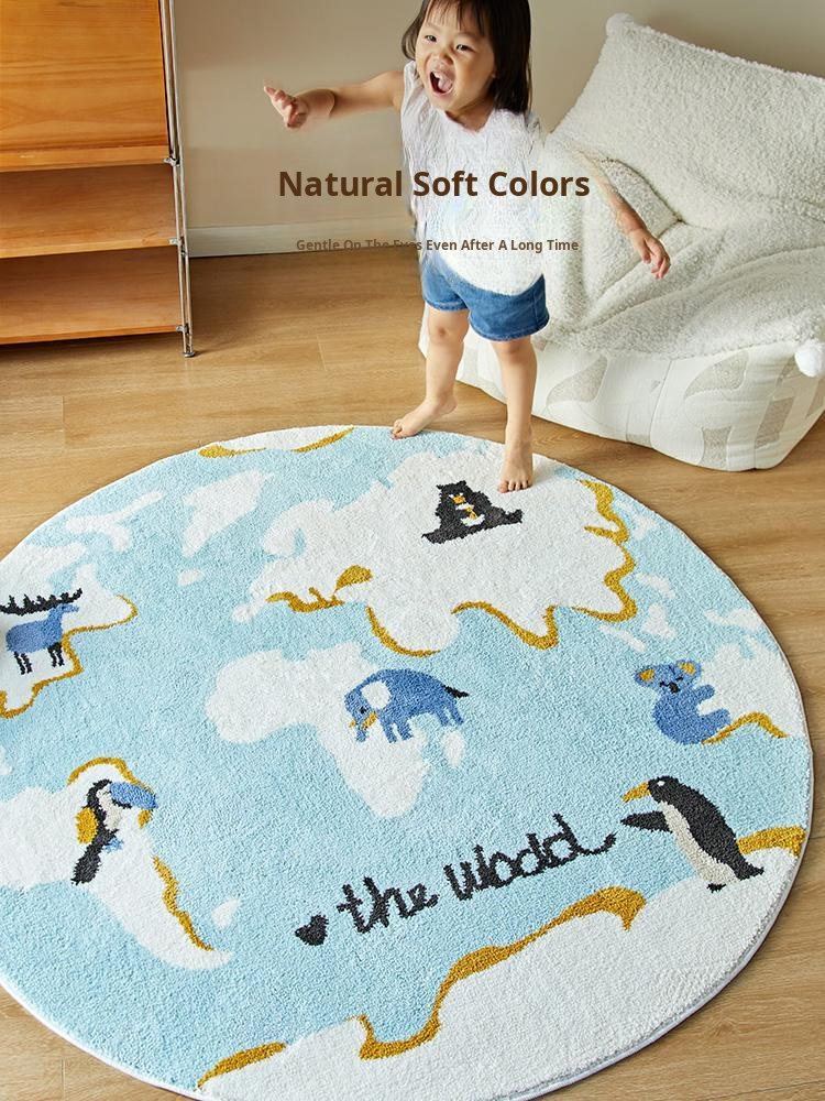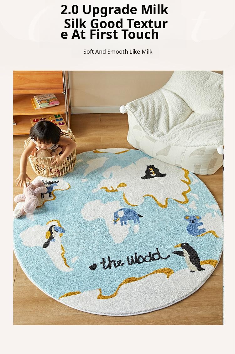 Kids' Room Round Carpet - Premium Non-Slip Milk Silk Plush Rug, Thick Cartoon Area Mat for Cozy Reading Nook and Bedside Use