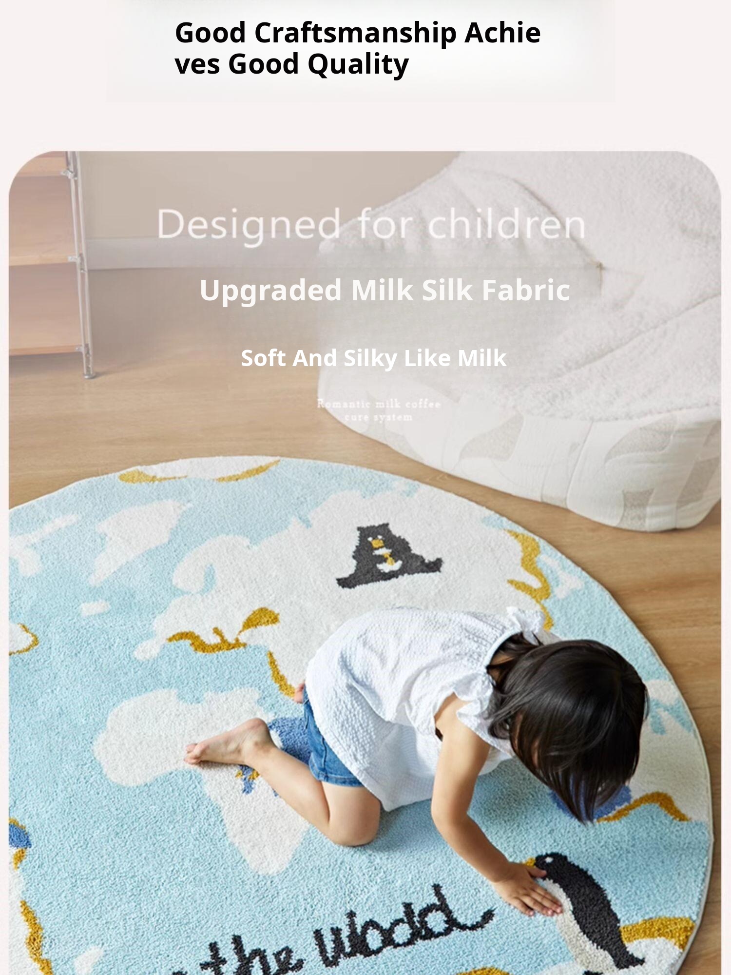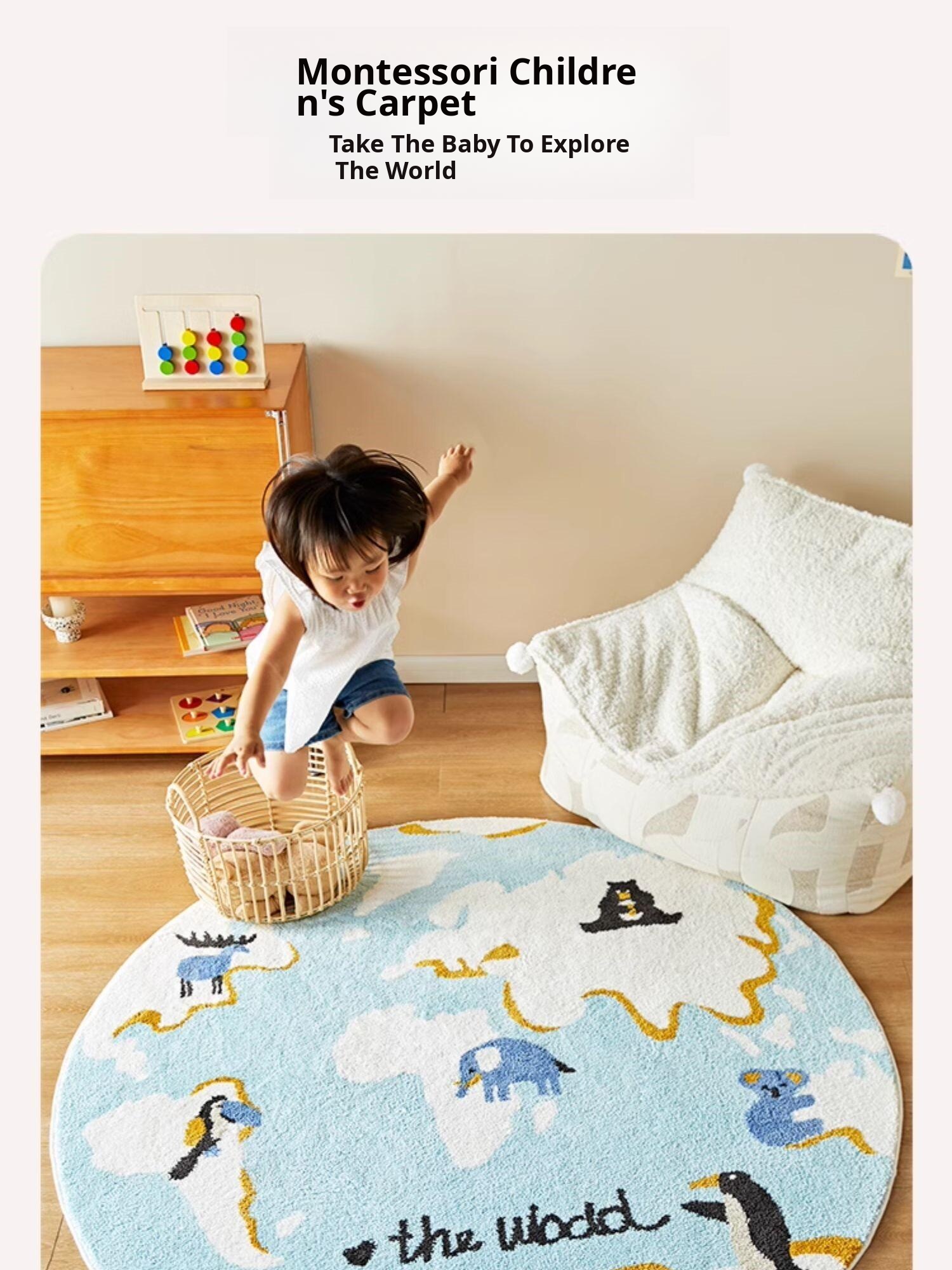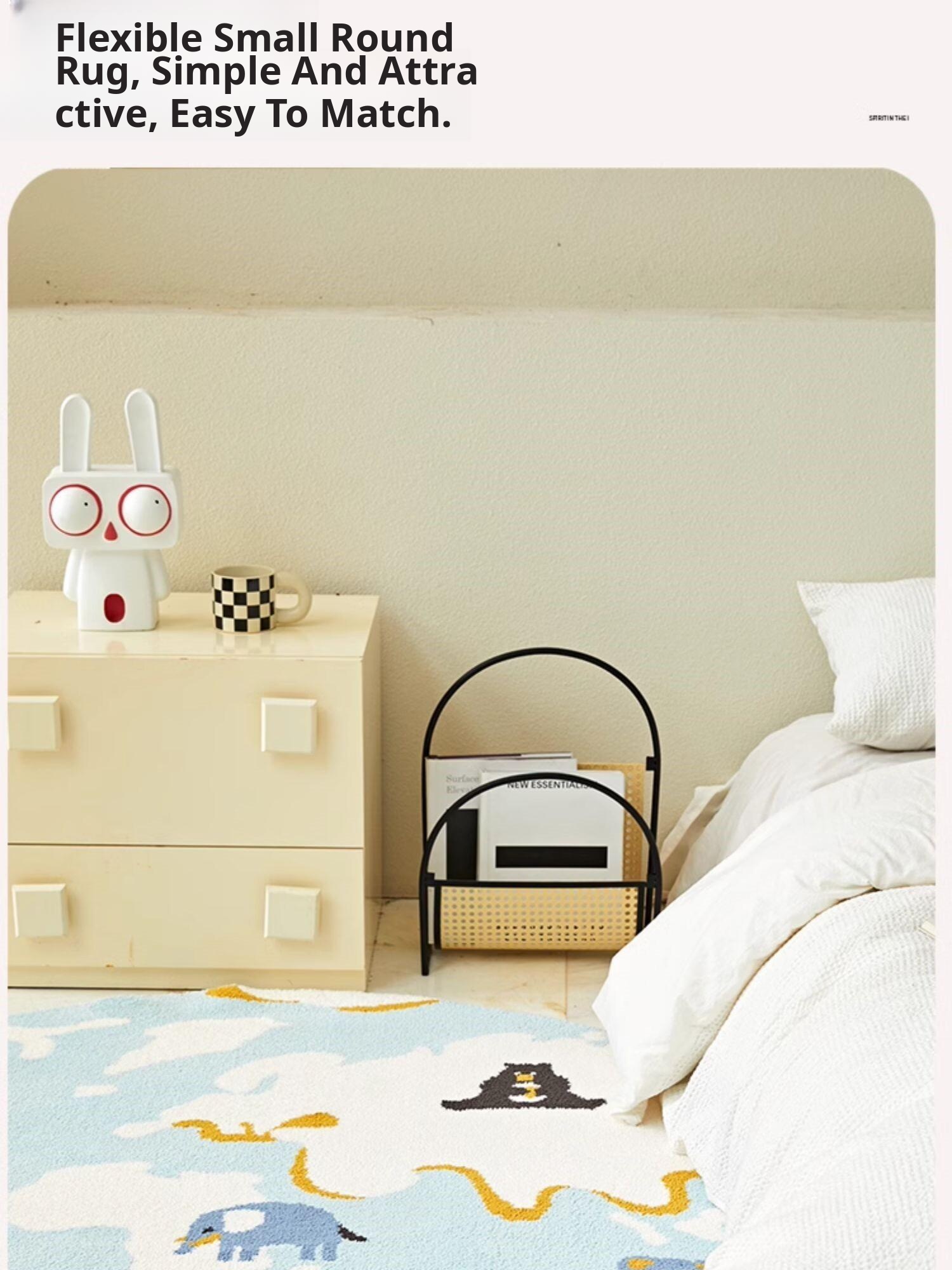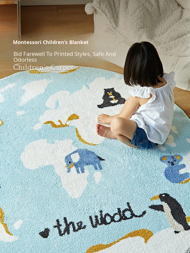Kids' Room Round Carpet - Premium Non-Slip Milk Silk Plush Rug, Thick Cartoon Area Mat for Cozy Reading Nook and Bedside Use