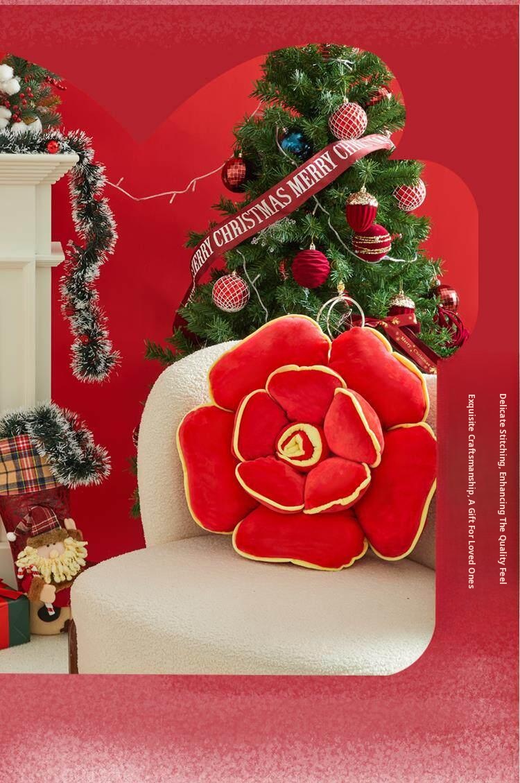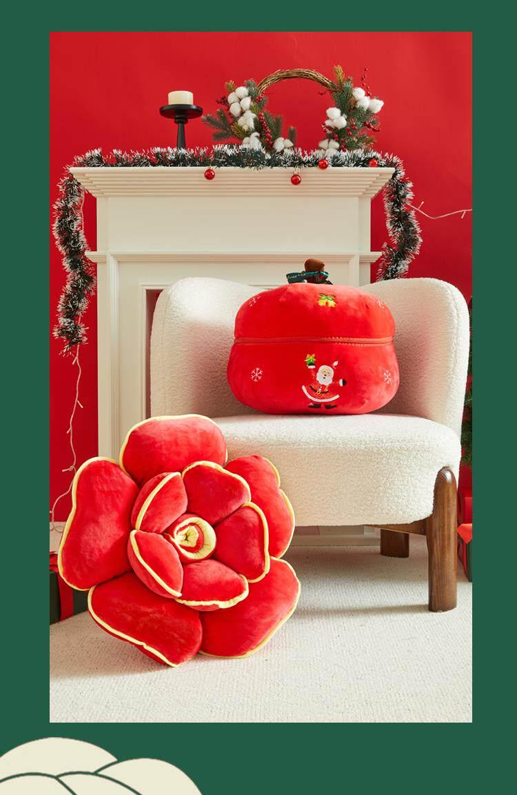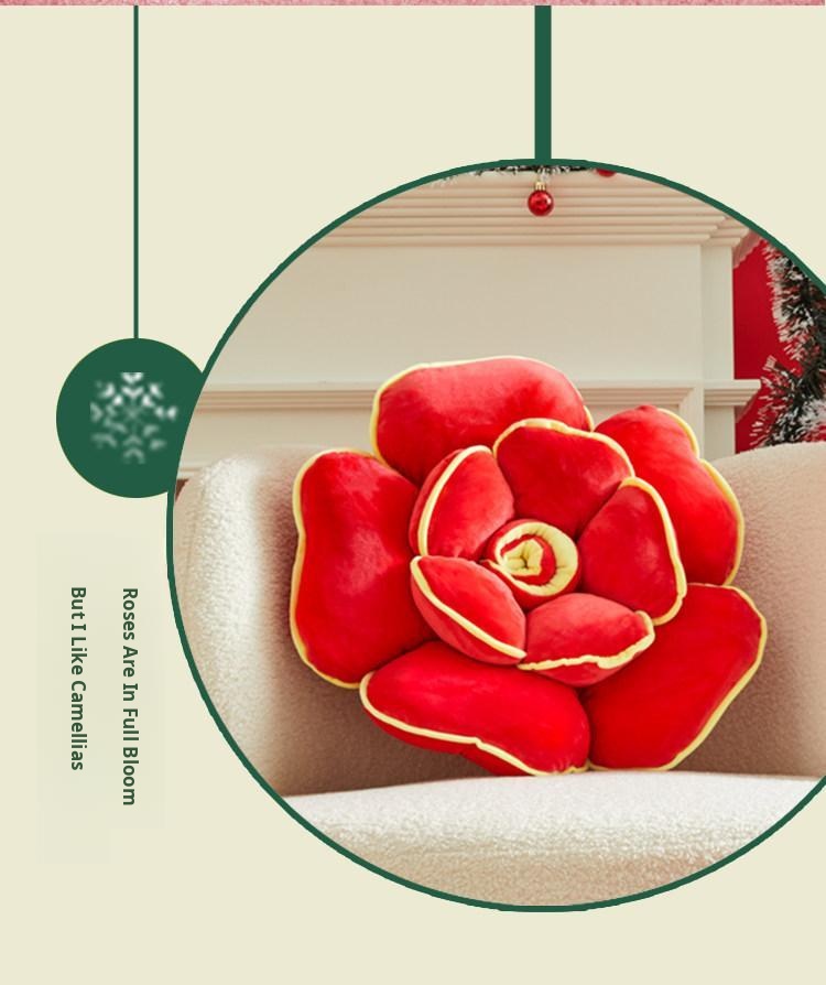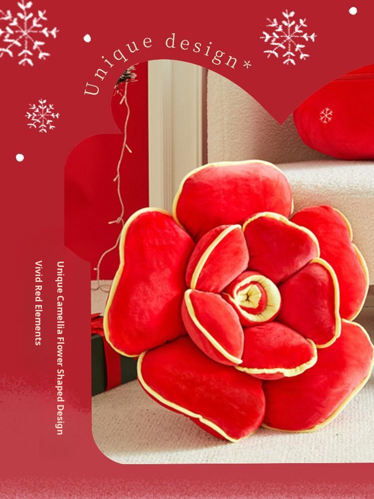 Modern Red Embroidered Decorative Pillow - Unique Shape Cushion for Living Room Sofa with Camellia Flower Design - Celebrate Style with This Chic Accent Pillow!