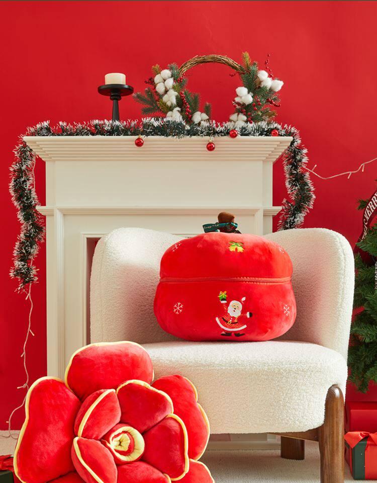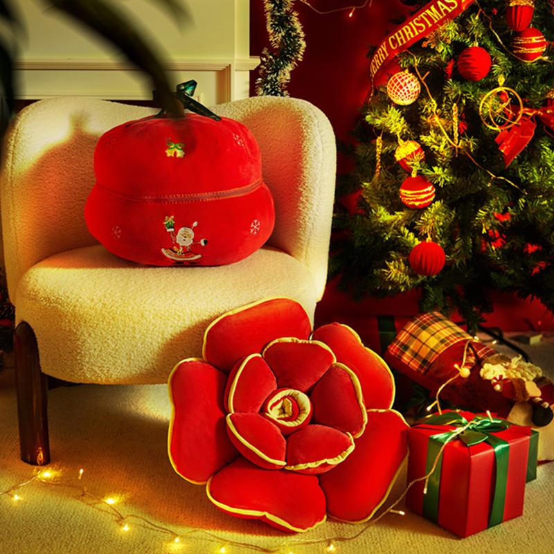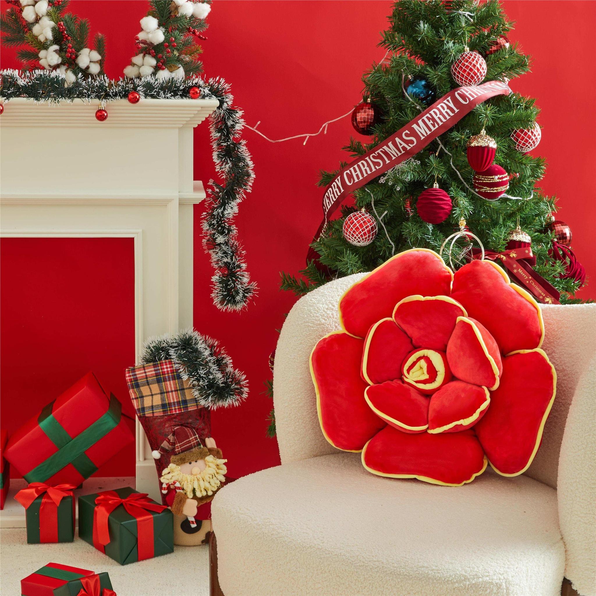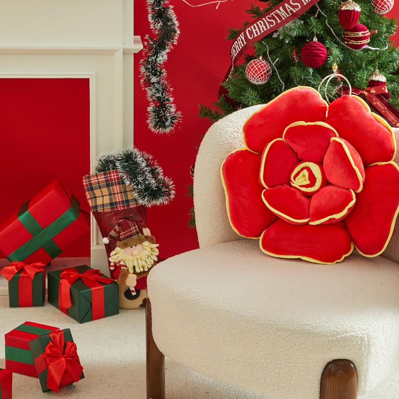 Modern Red Embroidered Decorative Pillow - Unique Shape Cushion for Living Room Sofa with Camellia Flower Design - Celebrate Style with This Chic Accent Pillow!