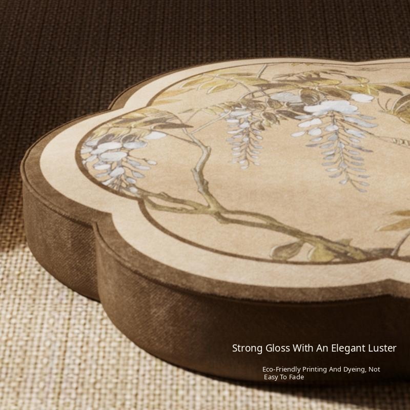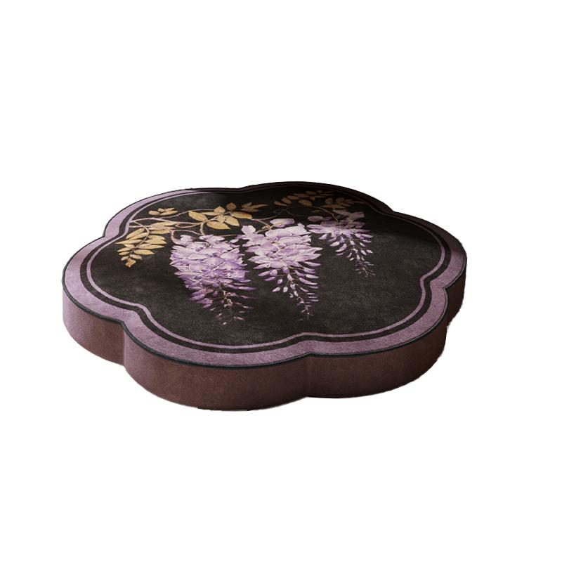 Wisteria Light and Shadow Velvet Printed Piping Futon-Round Flower Special Shape