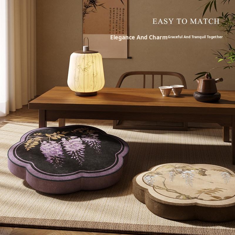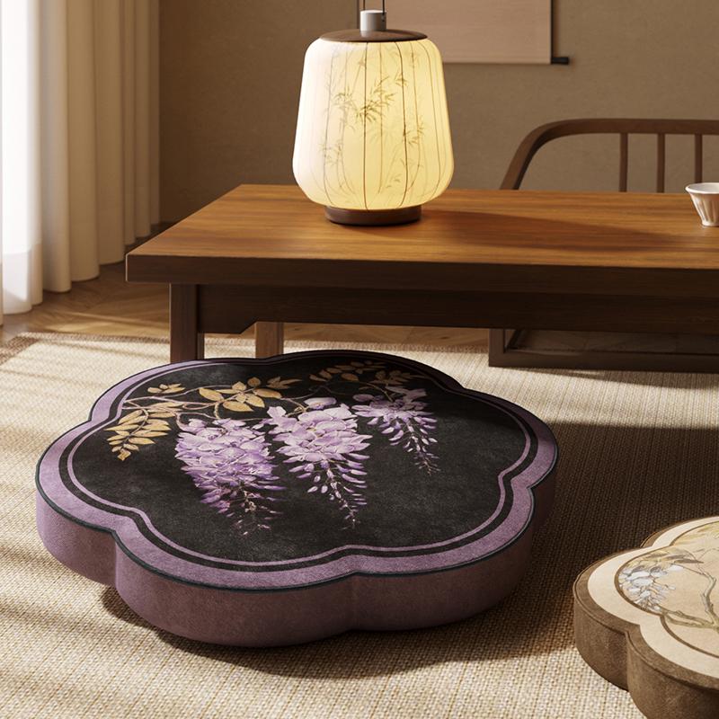 Wisteria Flower Branch Velvet Printed Piping Futon-Round Flower Special Shape