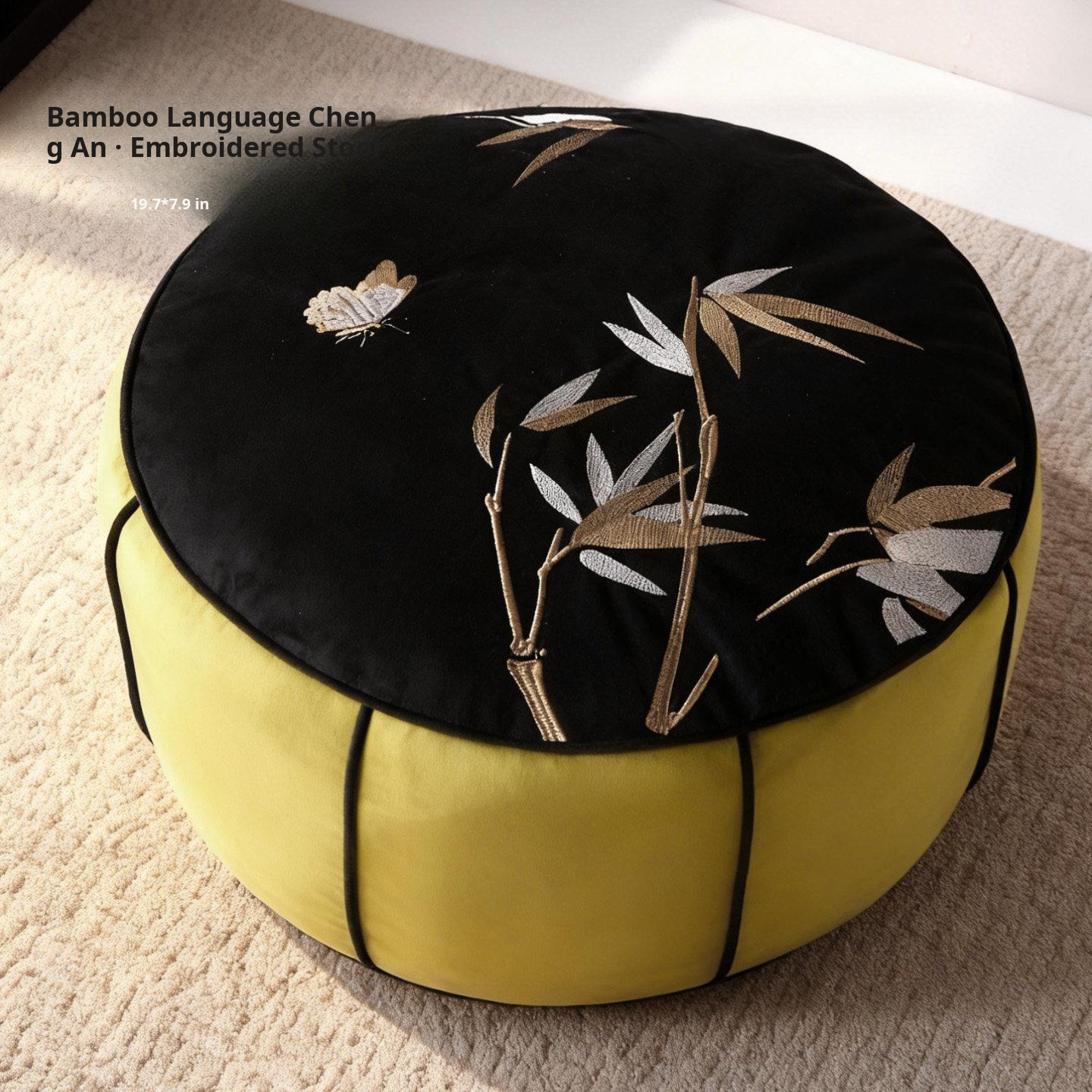 Bamboo Embroidered Pouf - 19.69in*7.87in