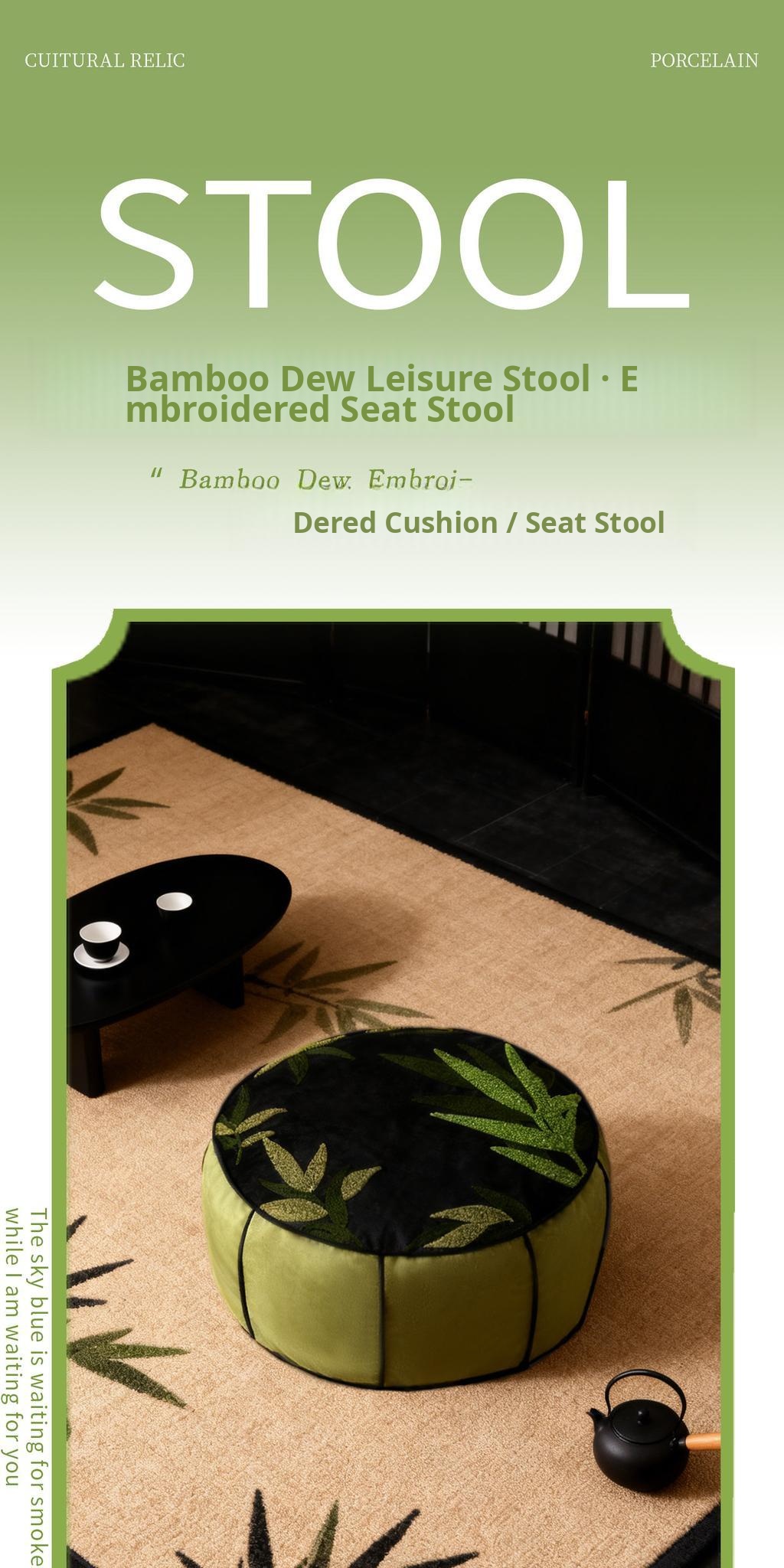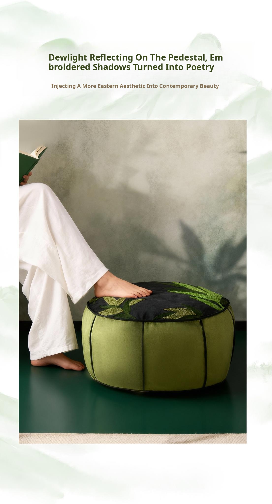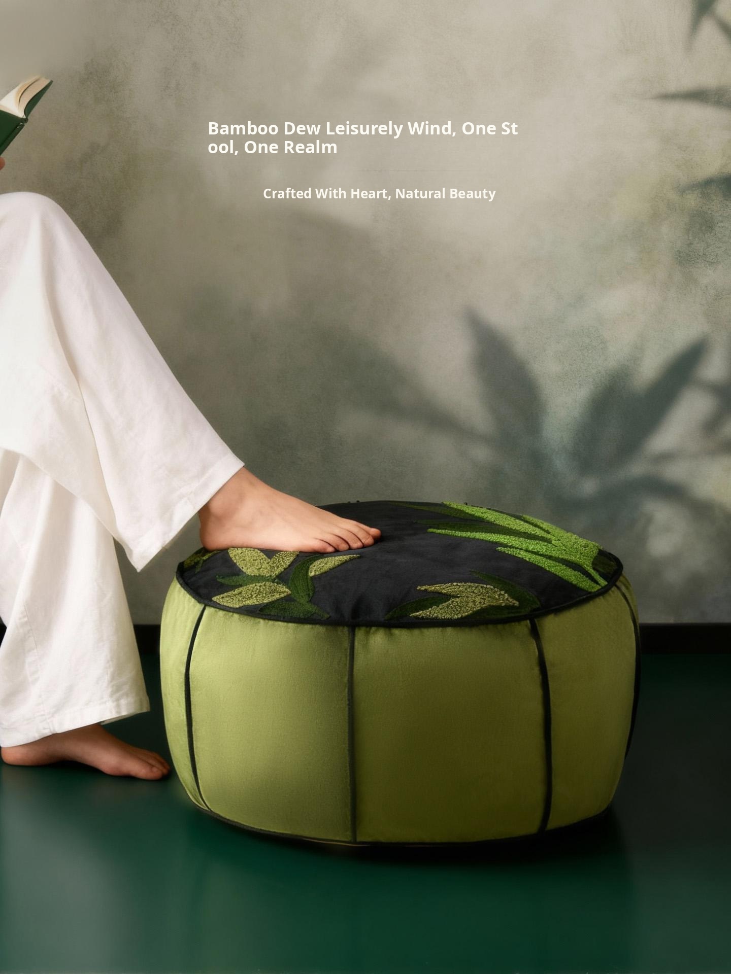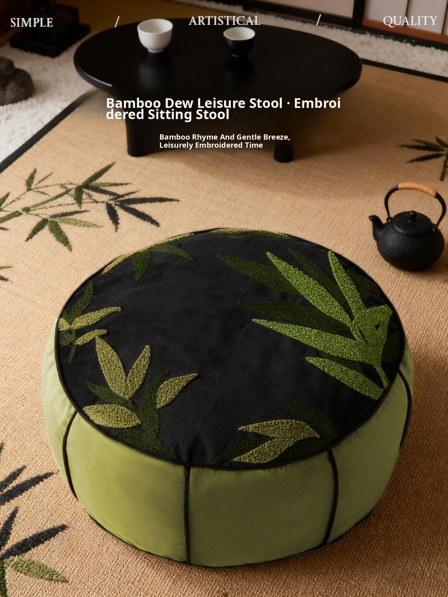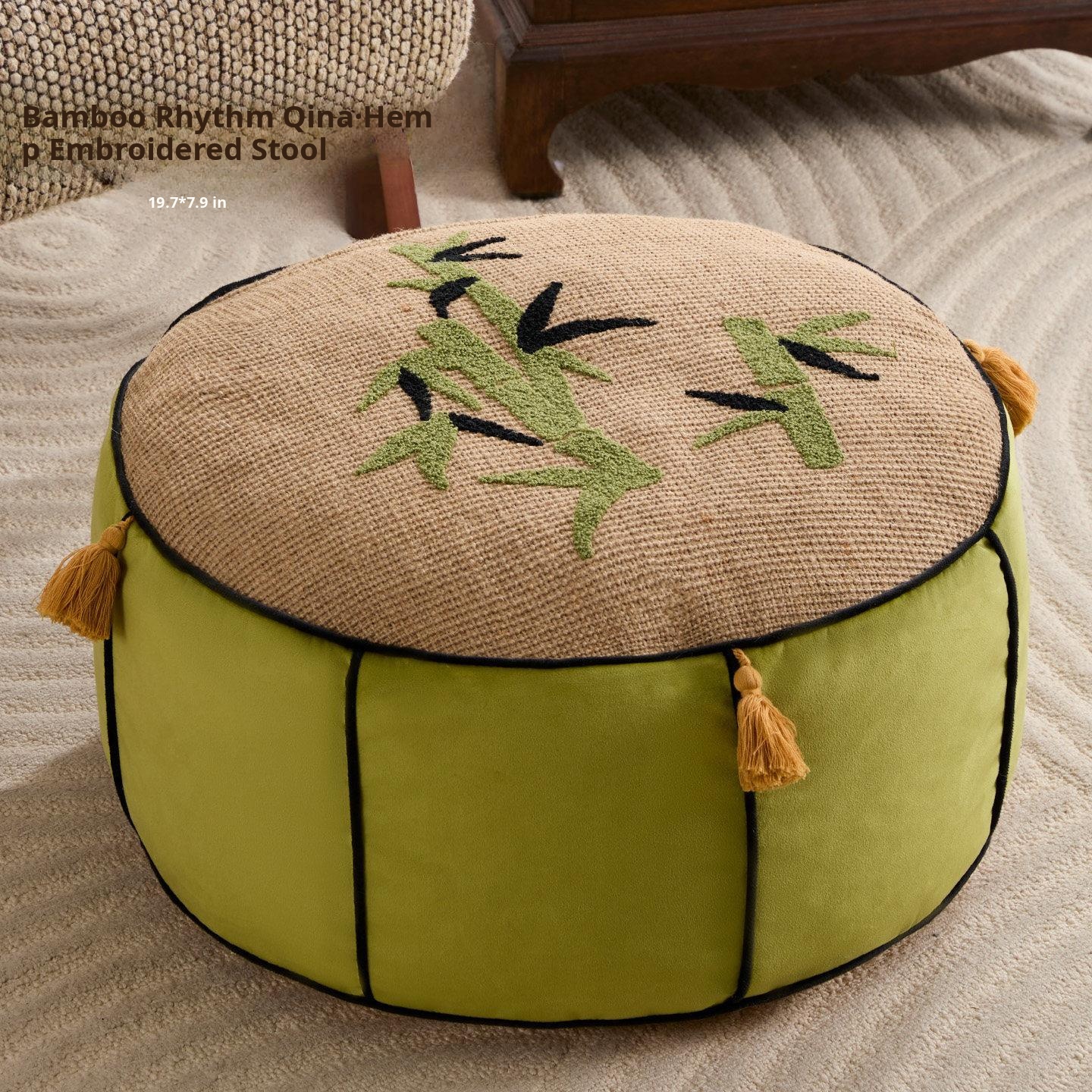 Bamboo Dew Leisure Embroidered Pouf - 19.69in*7.87in