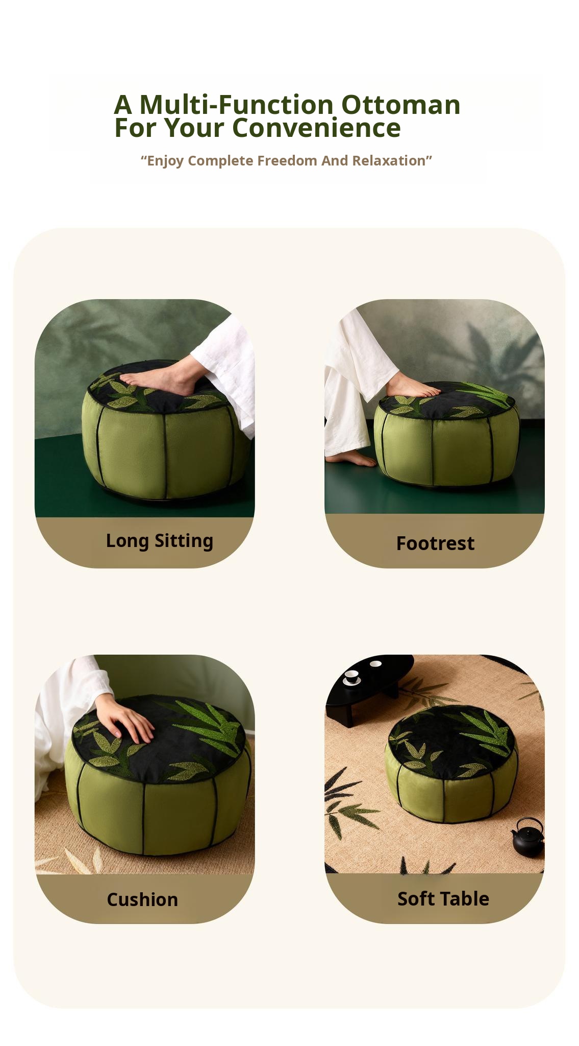 New Chinese Style Bamboo Harmony Tatami Cushion – Versatile Footstool for Entryway, Living Room, and Lazy Sofa – Perfect for Home Décor and Comfort!