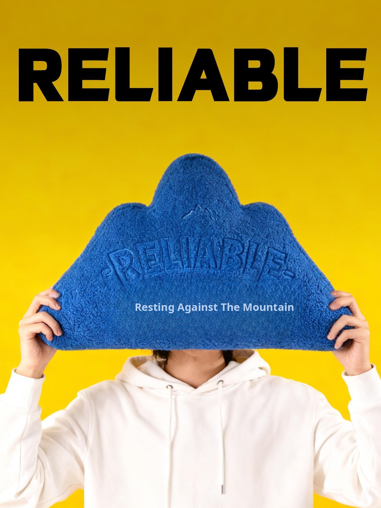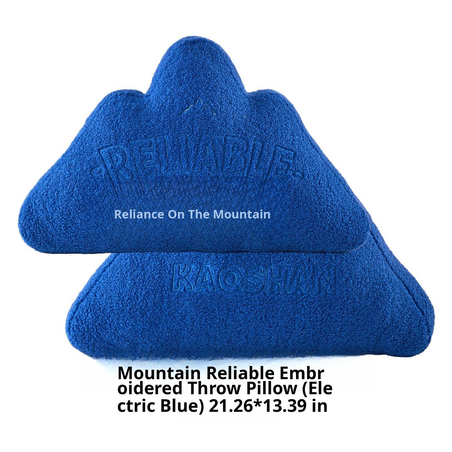 "Reliable Mountain" Embroidered Throw Pillow - Electric Blue