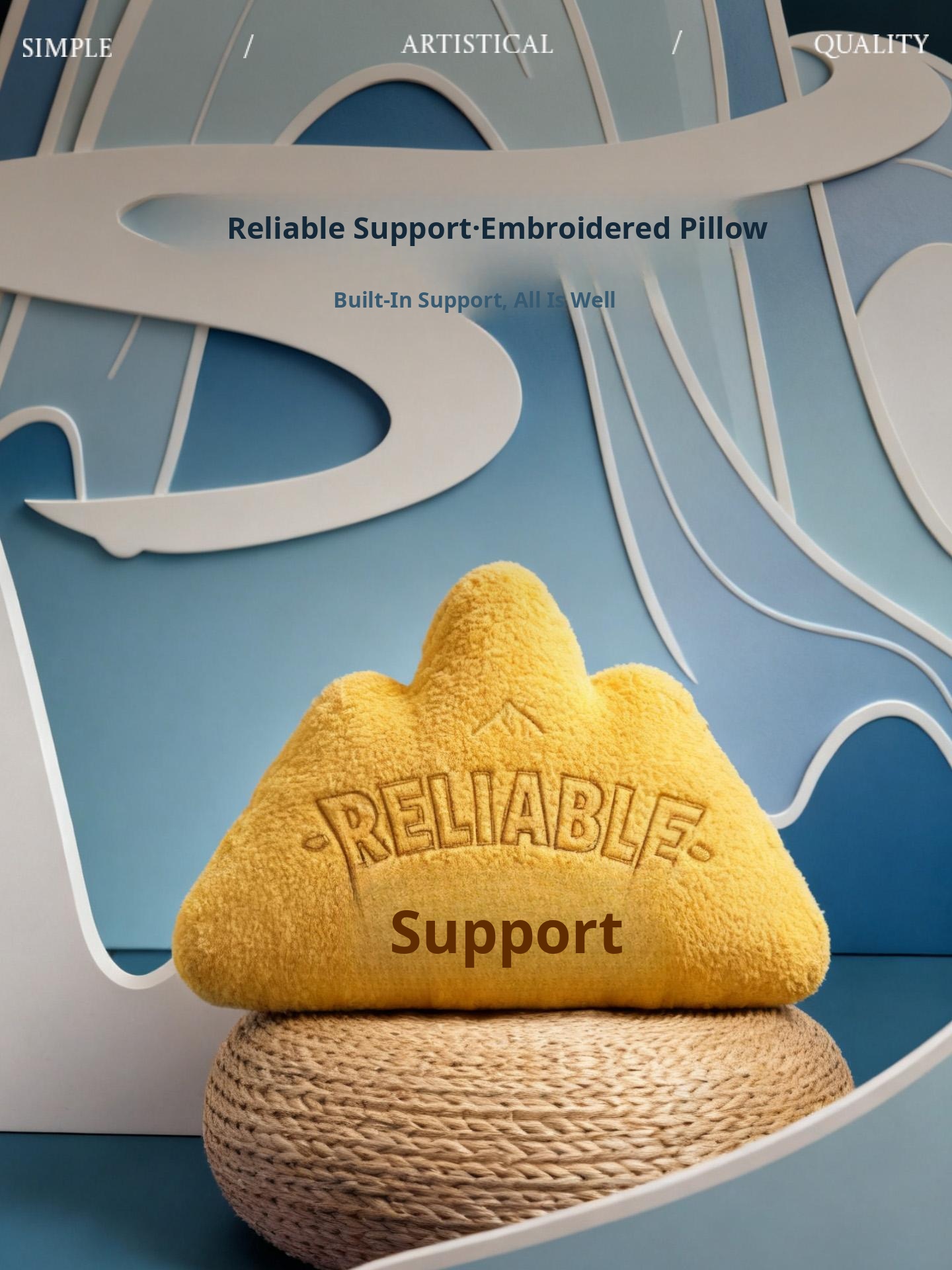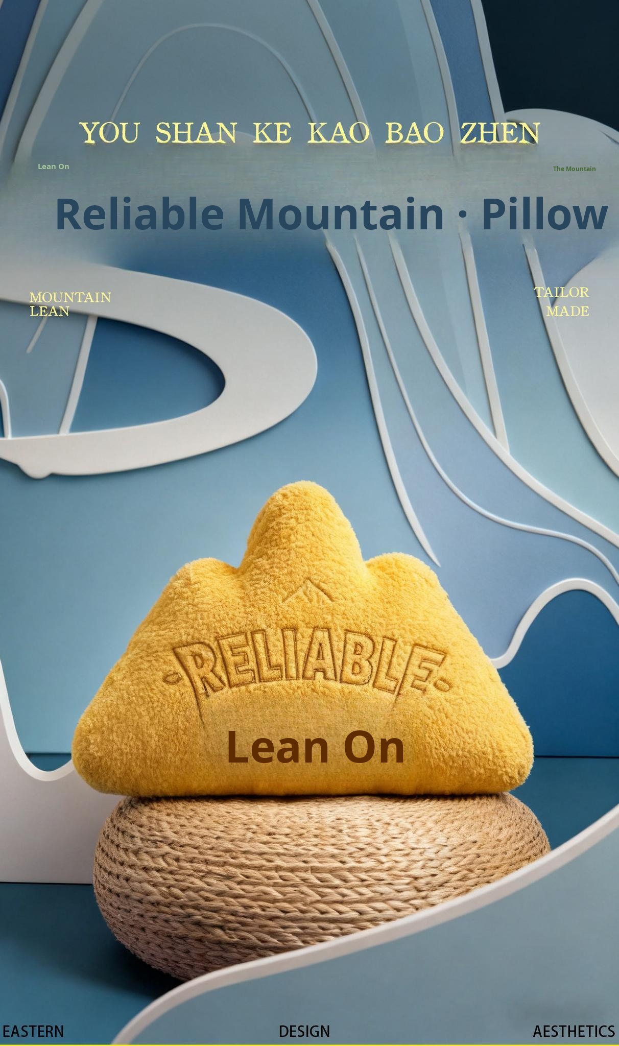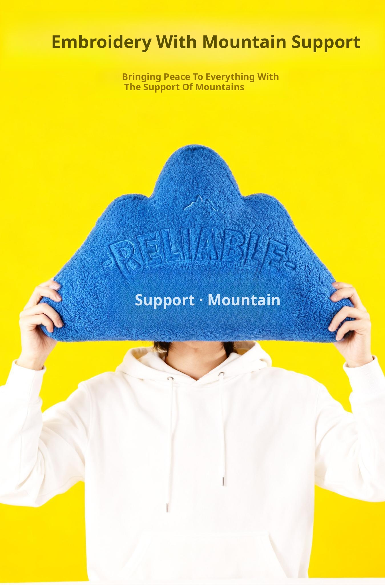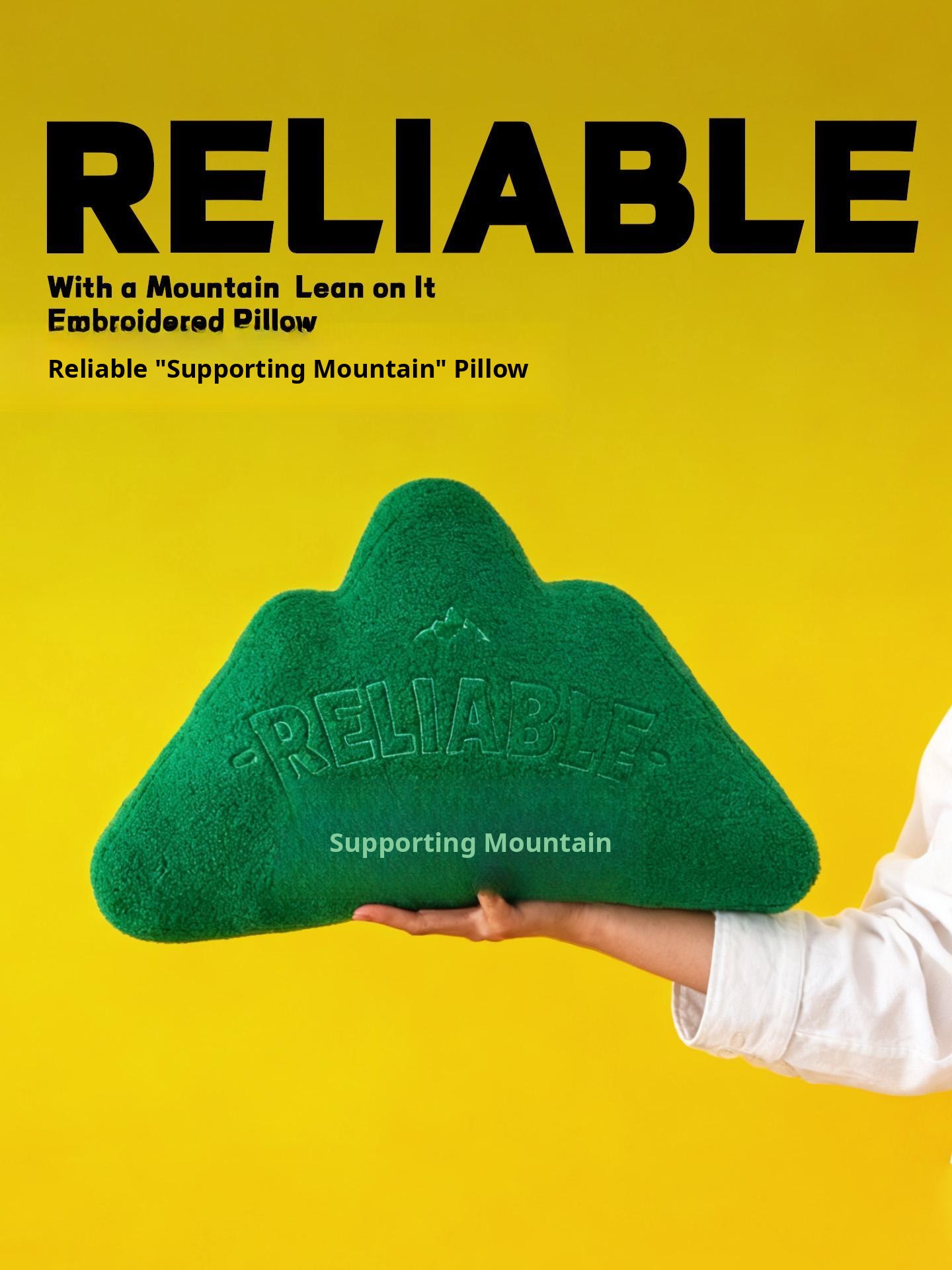 New Chinese Style Embroidered Mountain-Shaped Throw Pillow - Creative Yellow Cushion for Living Room Sofa or Office Chair, Ideal for Back Support